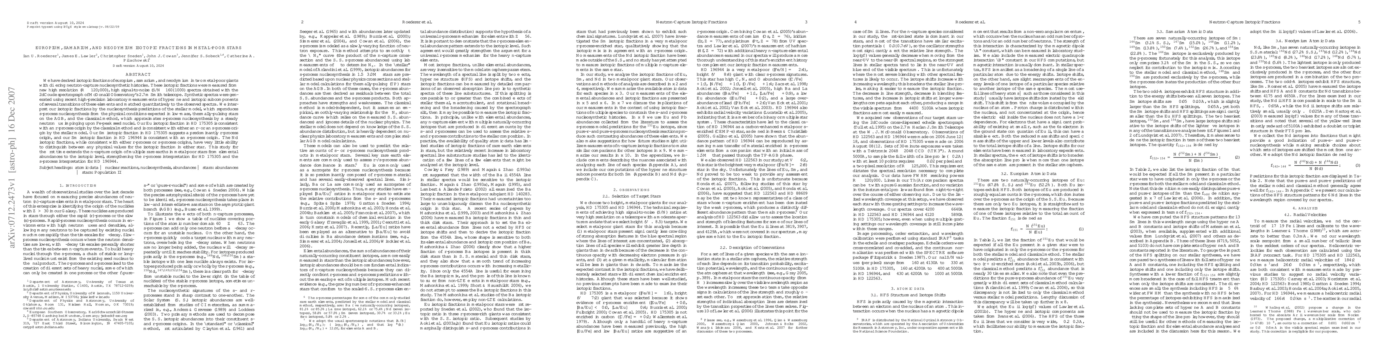 This study derives isotopic fractions of europium, samarium, and neodymium in two metal-poor stars using high-resolution spectra, finding evidence for both r-process and s-process origins. The results support an r-process for HD 175305 and an s-process for HD 196944.