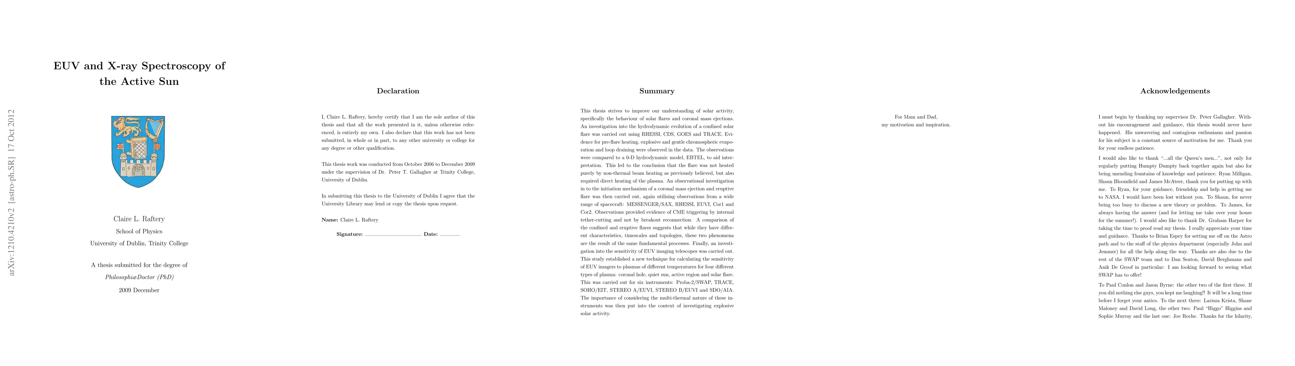 This thesis strives to improve our understanding of solar activity, specifically the behaviour of solar flares and coronal mass ejections. An investigation into the hydrodynamic evolution of a confined solar flare was carried out using RHESSI, CDS, GOES and TRACE. Evidence for pre-flare heating, explosive and gentle chromospheric evaporation and loop draining were observed in the data. The observations were compared to a 0-D hydrodynamic model, EBTEL, to aid interpretation. This led to the conclusion that the flare was not heated purely by non-thermal beam heating as previously believed, but also required direct heating of the plasma. An observational investigation in to the initiation mechanism of a coronal mass ejection and eruptive flare was then carried out, again utilising observations from a wide range of spacecraft: MESSENGER/SAX, RHESSI, EUVI, Cor1 and Cor2. Observations provided evidence of CME triggering by internal tether-cutting and not by breakout reconnection. A comparison of the confined and eruptive flares suggests that while they have different characteristics, timescales and topologies, these two phenomena are the result of the same fundamental processes. Finally, an investigation into the sensitivity of EUV imaging telescopes was carried out. This study established a new technique for calculating the sensitivity of EUV imagers to plasmas of different temperatures for four different types of plasma: coronal hole, quiet sun, active region and solar flare. This was carried out for six instruments: Proba-2/SWAP, TRACE, SOHO/EIT, STEREO A/EUVI, STEREO B/EUVI and SDO/AIA. The importance of considering the multi-thermal nature of these instruments was then put into the context of investigating explosive solar activity.