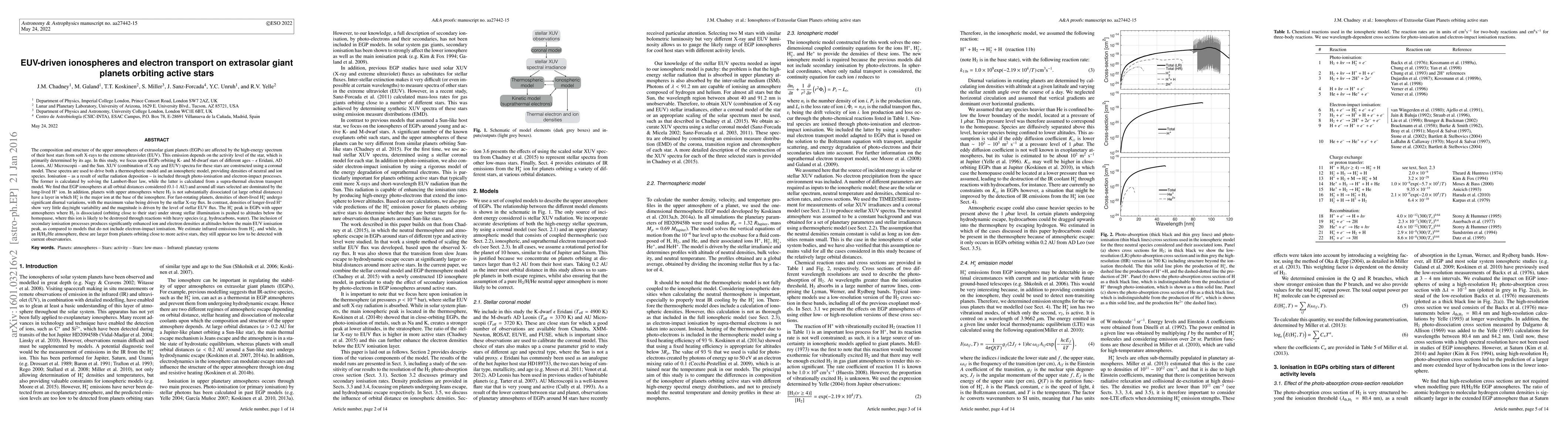 This study explores the impact of extreme ultraviolet (EUV) and X-ray radiation from active stars on the ionospheres of extrasolar giant planets (EGPs). It finds that H$^+$ ions dominate EGP ionospheres, while H$_3^+$ ions show significant diurnal variations driven by stellar X-ray flux, and secondary ionisation processes enhance ion and electron densities.