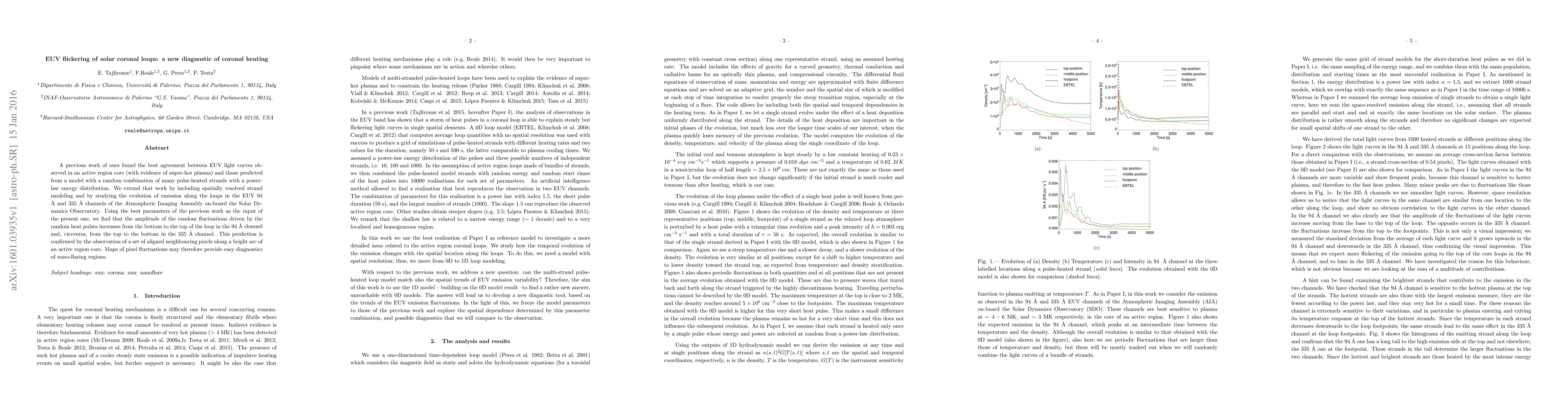 A previous work of ours found the best agreement between EUV light curves observed in an active region core (with evidence of super-hot plasma) and those predicted from a model with a random combination of many pulse-heated strands with a power-law energy distribution. We extend that work by including spatially resolved strand modeling and by studying the evolution of emission along the loops in the EUV 94 A and 335 A channels of the Atmospheric Imaging Assembly on-board the Solar Dynamics Observatory. Using the best parameters of the previous work as the input of the present one, we find that the amplitude of the random fluctuations driven by the random heat pulses increases from the bottom to the top of the loop in the 94 A channel and, viceversa, from the top to the bottom in the 335 A channel. This prediction is confirmed by the observation of a set of aligned neighbouring pixels along a bright arc of an active region core. Maps of pixel fluctuations may therefore provide easy diagnostics of nano-flaring regions.