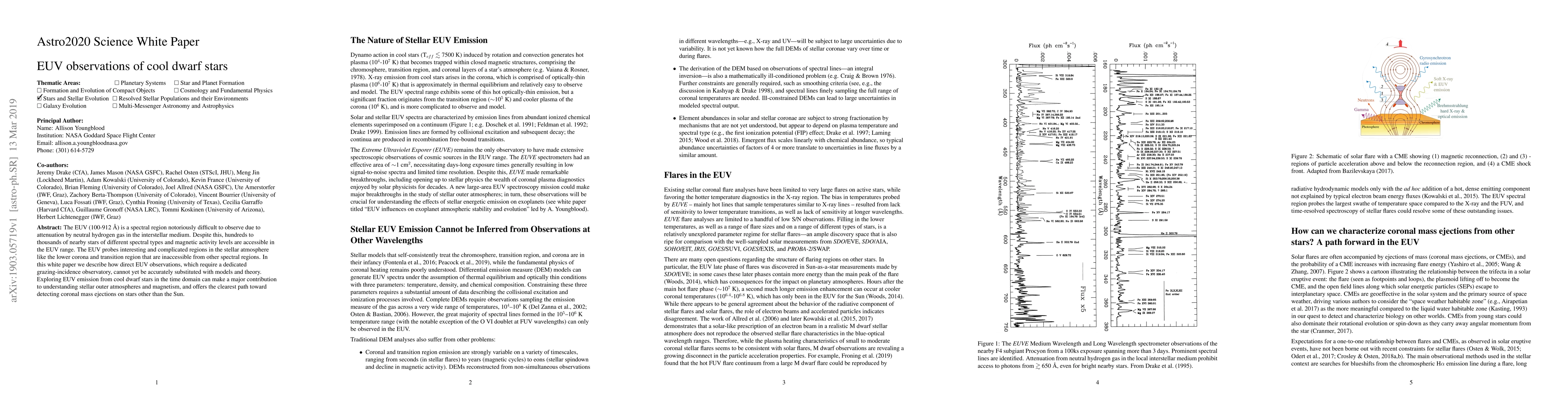 The EUV (100-912 {\AA}) is a spectral region notoriously difficult to observe due to attenuation by neutral hydrogen gas in the interstellar medium. Despite this, hundreds to thousands of nearby stars of different spectral types and magnetic activity levels are accessible in the EUV range. The EUV probes interesting and complicated regions in the stellar atmosphere like the lower corona and transition region that are inaccessible from other spectral regions. In this white paper we describe how direct EUV observations, which require a dedicated grazing-incidence observatory, cannot yet be accurately substituted with models and theory. Exploring EUV emission from cool dwarf stars in the time domain can make a major contribution to understanding stellar outer atmospheres and magnetism, and offers the clearest path toward detecting coronal mass ejections on stars other than the Sun.