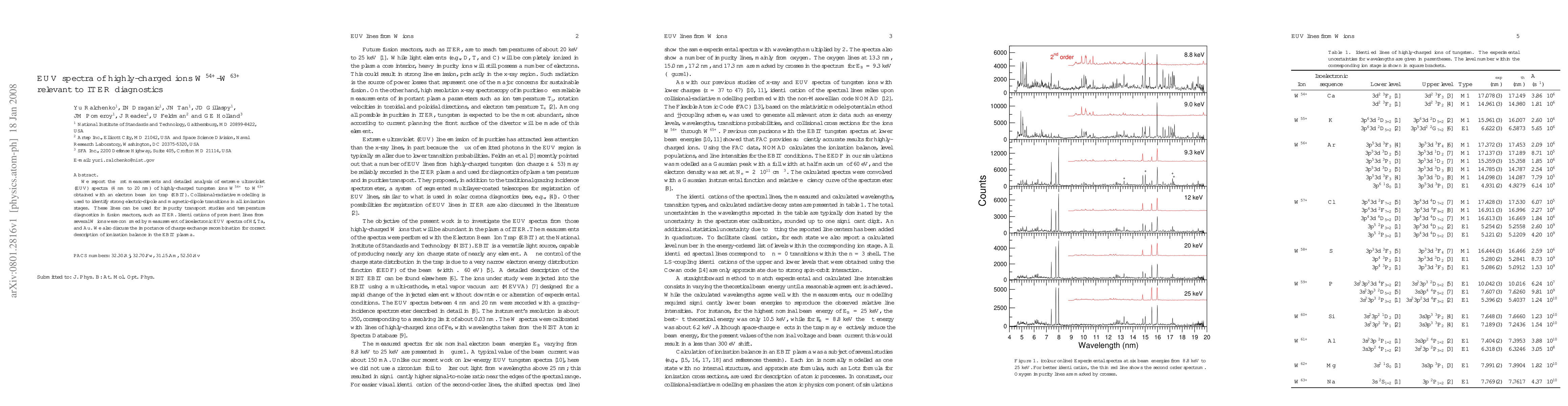 This paper presents the first measurements of extreme ultraviolet spectra of highly-charged tungsten ions, W$^{54+}$ to W$^{63+}$, using an electron beam ion trap. The study identifies key transitions useful for diagnostics in fusion reactors like ITER, emphasizing the role of charge exchange recombination in plasma ionization balance.