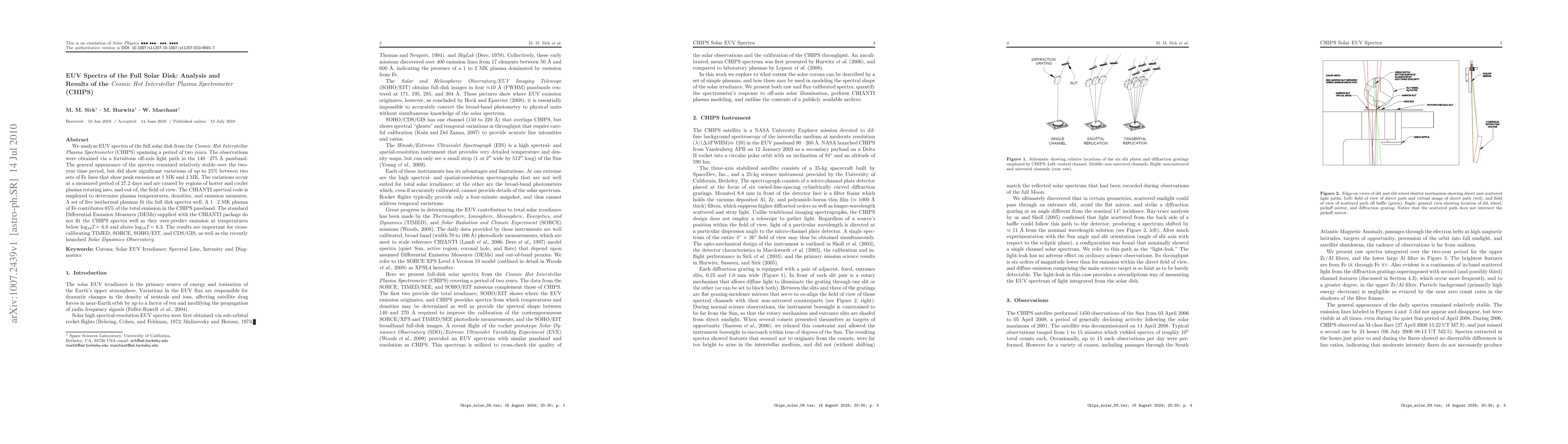 This paper analyzes EUV spectra of the full solar disk from CHIPS over two years, revealing stable spectra with significant 25% variations in Fe lines due to rotating plasma regions. The study employs CHIANTI to determine plasma characteristics, finding that a 1-2 MK plasma of Fe dominates the emission.