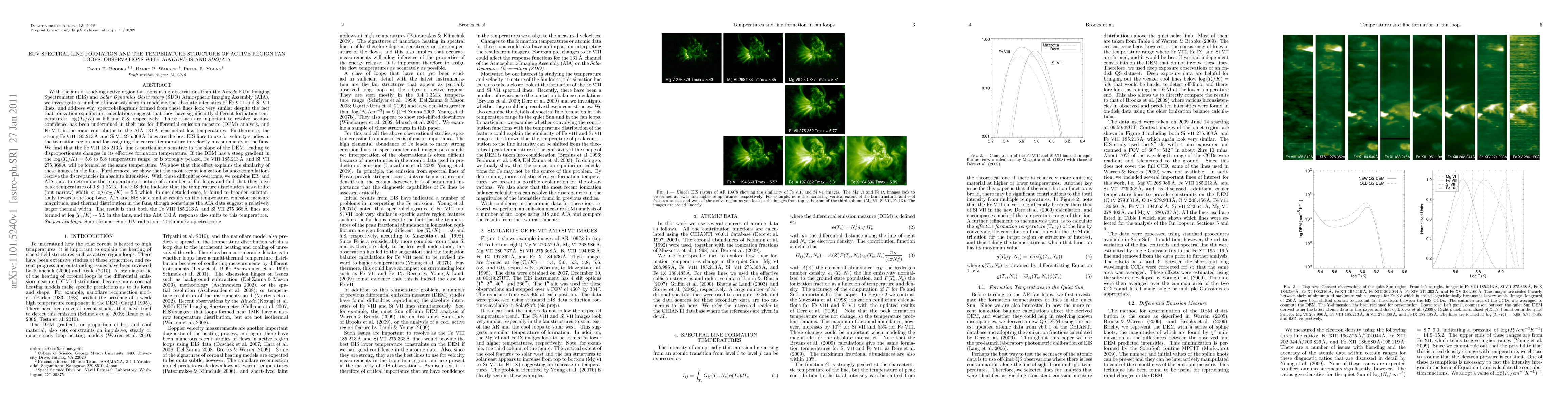 This paper investigates the formation of EUV spectral lines in active region fan loops using Hinode/EIS and SDO/AIA data, resolving inconsistencies in modeling Fe VIII and Si VII lines. It finds that the Fe VIII 185.213A line's sensitivity to the DEM slope explains the similar appearance of Fe VIII and Si VII lines despite their different formation temperatures, and concludes that both lines form at log T/K ~ 5.9 in the fans, with peak temperatures ranging from 0.8 to 1.2 MK.