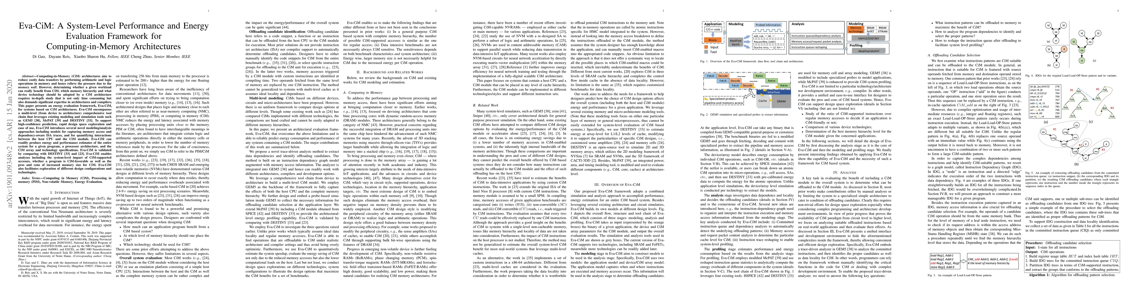 Eva-CiM is a comprehensive framework for evaluating the performance and energy of Computing-in-Memory (CiM) architectures, leveraging existing tools and novel modeling approaches. It enables rapid design space exploration and provides high-confidence energy estimates for various CiM configurations and technologies, demonstrating significant energy improvements.