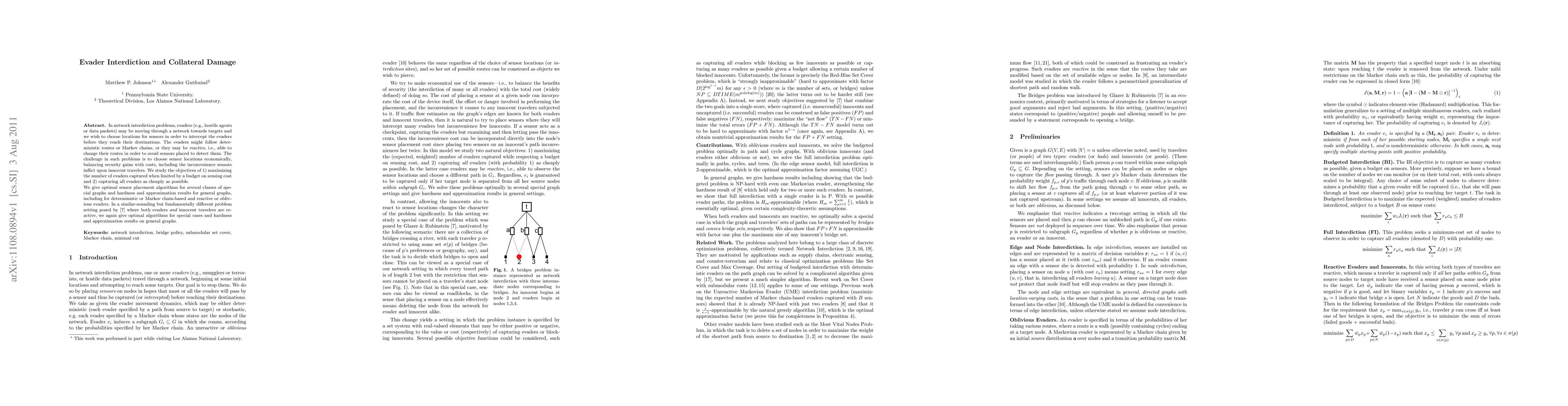 In network interdiction problems, evaders (e.g., hostile agents or data packets) may be moving through a network towards targets and we wish to choose locations for sensors in order to intercept the evaders before they reach their destinations. The evaders might follow deterministic routes or Markov chains, or they may be reactive}, i.e., able to change their routes in order to avoid sensors placed to detect them. The challenge in such problems is to choose sensor locations economically, balancing security gains with costs, including the inconvenience sensors inflict upon innocent travelers. We study the objectives of 1) maximizing the number of evaders captured when limited by a budget on sensing cost and 2) capturing all evaders as cheaply as possible. We give optimal sensor placement algorithms for several classes of special graphs and hardness and approximation results for general graphs, including for deterministic or Markov chain-based and reactive or oblivious evaders. In a similar-sounding but fundamentally different problem setting posed by Rubinstein and Glazer where both evaders and innocent travelers are reactive, we again give optimal algorithms for special cases and hardness and approximation results on general graphs.