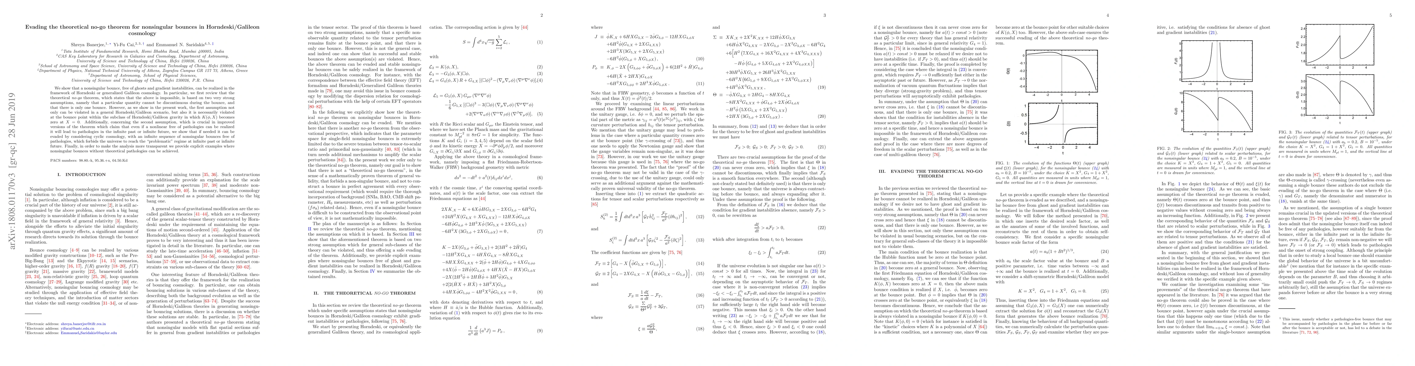 This paper demonstrates that nonsingular bounces free of ghosts and gradient instabilities can occur in Horndeski or generalized Galileon cosmology, defying the theoretical no-go theorem by violating key assumptions about continuity and the uniqueness of the bounce. It also proposes cyclic cosmology to avoid problematic infinite past or future scenarios.