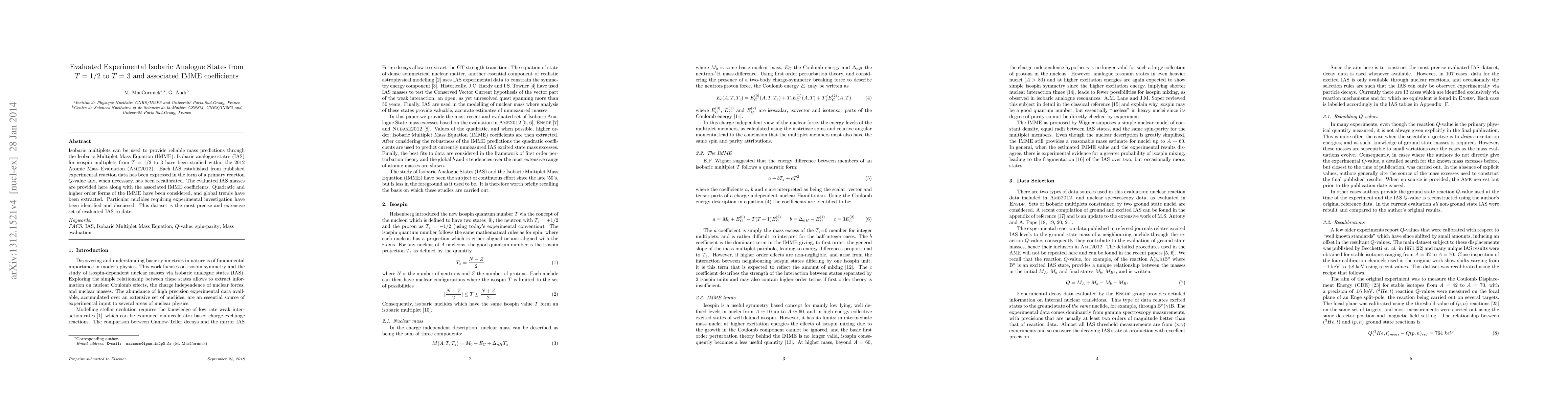 Isobaric multiplets can be used to provide reliable mass predictions through the Isobaric Multiplet Mass Equation (IMME). Isobaric analogue states (IAS) for isospin multiplets from $T=1/2$ to $T=3$ have been studied within the 2012 Atomic Mass Evaluation (Ame2012). Each IAS established from published experimental reaction data has been expressed in the form of a primary reaction $Q$-value, and if necessary, has been recalibrated. The evaluated IAS masses are provided here along with the associated IMME coefficients. Quadratic and higher order forms of the IMME have been considered, and global trends have been extracted. Particular nuclides, requiring experimental investigation, have been identified and discussed. This dataset is the most precise and extensive set of evaluated IAS to date.