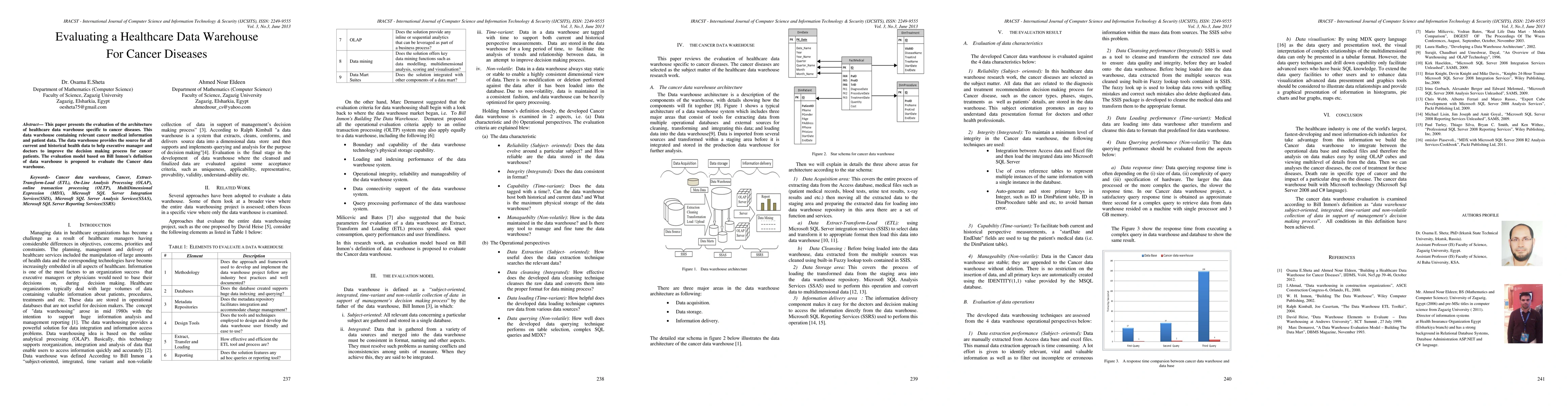 This paper evaluates the architecture of a healthcare data warehouse focused on cancer diseases, assessing its ability to provide comprehensive medical and patient data to enhance decision-making for cancer treatment. The evaluation is based on Bill Inmon's data warehouse definition.