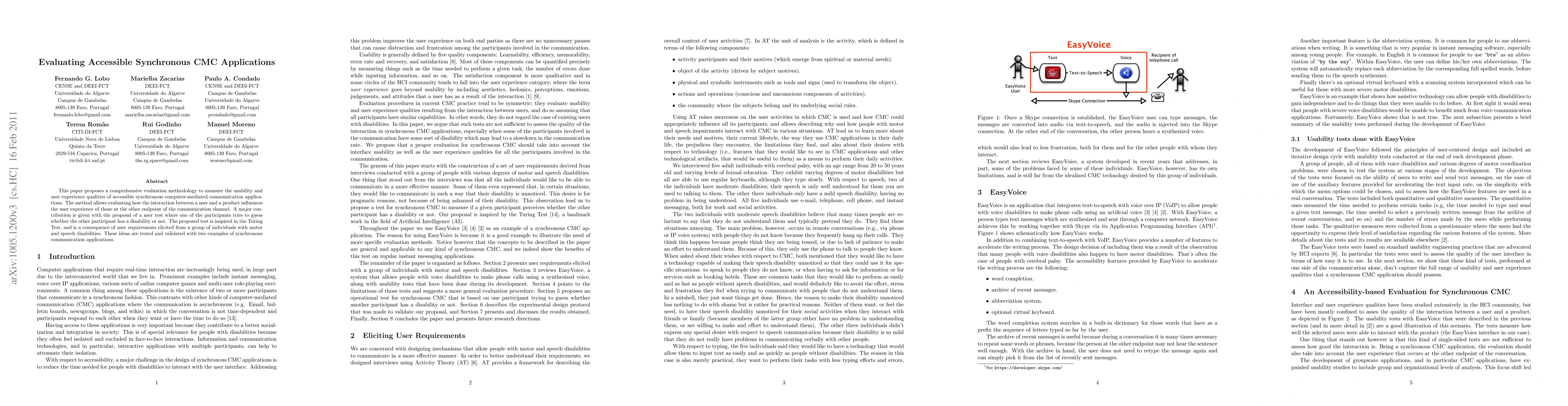 This paper proposes a more comprehensive evaluation methodology to measure the usability and user experience qualities of accessible synchronous computer-mediated communication applications. The methodology goes beyond current practices by evaluating how the interaction between a user and a product influences the user experience of those at the other endpoint of the communication channel. A major contribution is given with the proposal of a user test where one of the participants tries to guess whether the other participant has a disability or not. The proposed test is inspired in the Turing Test, and is a consequence of user requirements elicited from a group of individuals with motor and speech disabilities. These ideas are tested and validated with two examples of synchronous communication applications.