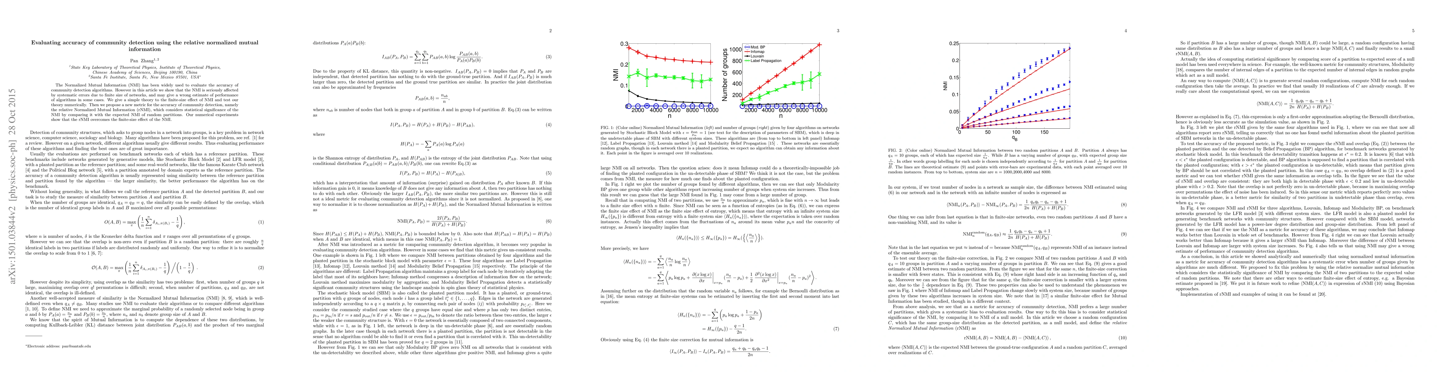This paper critiques the limitations of Normalized Mutual Information (NMI) in evaluating community detection accuracy due to finite network size effects, proposes a new metric called relative Normalized Mutual Information (rNMI), and demonstrates through numerical experiments that rNMI provides a more accurate and statistically significant measure.