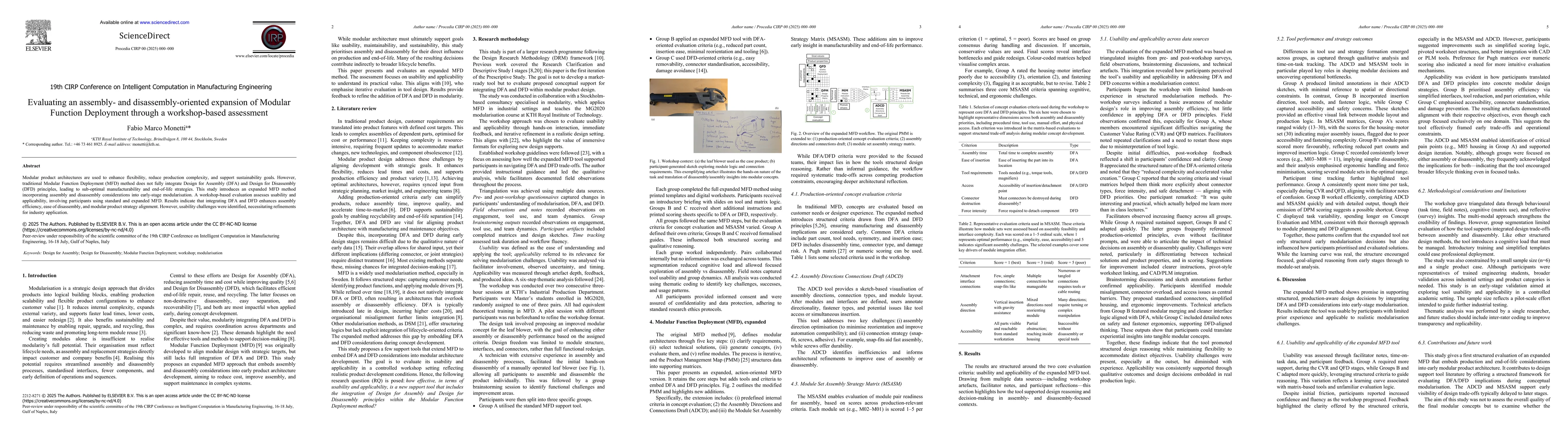 A new method for Modular Function Deployment combines Design for Assembly (DFA) and Design for Disassembly (DFD), improving manufacturability and end-of-life strategies, but requires refinements for industry application.