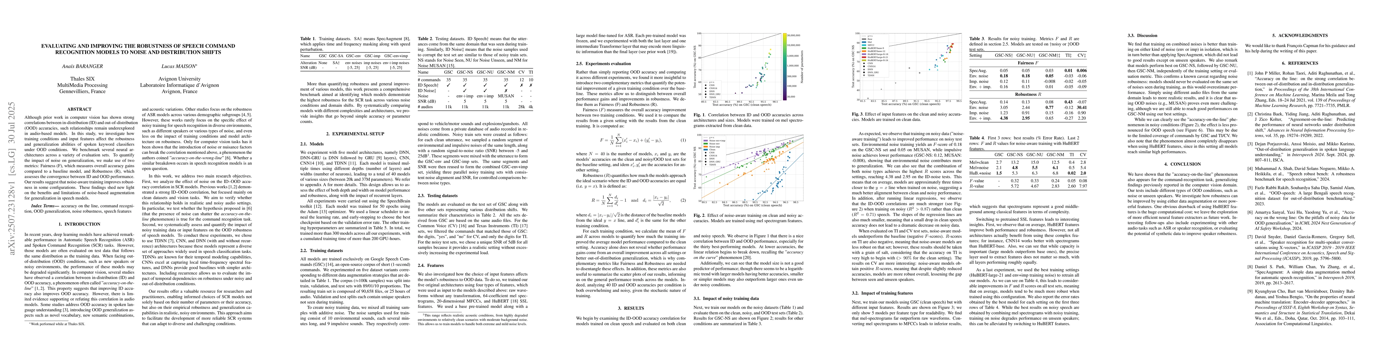 Although prior work in computer vision has shown strong correlations between in-distribution (ID) and out-of-distribution (OOD) accuracies, such relationships remain underexplored in audio-based models. In this study, we investigate how training conditions and input features affect the robustness and generalization abilities of spoken keyword classifiers under OOD conditions. We benchmark several neural architectures across a variety of evaluation sets. To quantify the impact of noise on generalization, we make use of two metrics: Fairness (F), which measures overall accuracy gains compared to a baseline model, and Robustness (R), which assesses the convergence between ID and OOD performance. Our results suggest that noise-aware training improves robustness in some configurations. These findings shed new light on the benefits and limitations of noise-based augmentation for generalization in speech models.