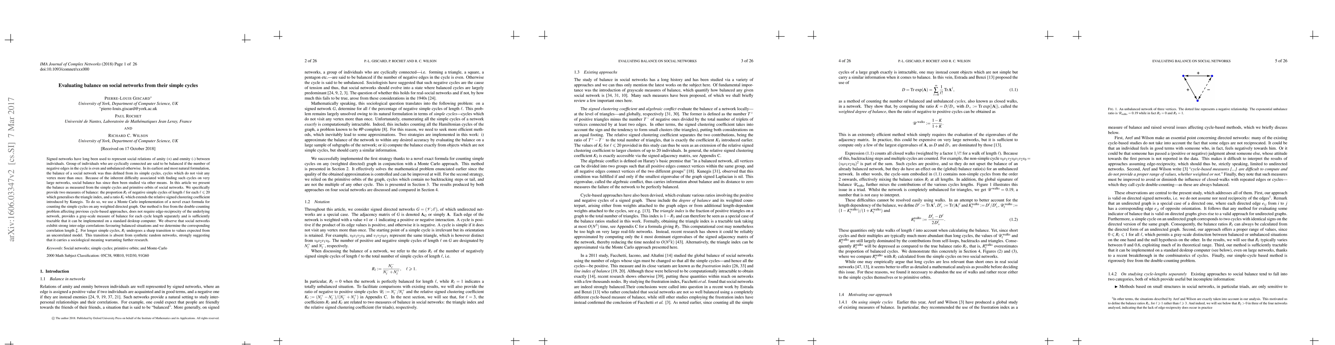 Signed networks have long been used to represent social relations of amity (+) and enmity (-) between individuals. Group of individuals who are cyclically connected are said to be balanced if the number of negative edges in the cycle is even and unbalanced otherwise. In its earliest and most natural formulation, the balance of a social network was thus defined from its simple cycles, cycles which do not visit any vertex more than once. Because of the inherent difficulty associated with finding such cycles on very large networks, social balance has since then been studied via other means. In this article we present the balance as measured from the simple cycles and primitive orbits of social networks. We specifically provide two measures of balance: the proportion $R_\ell$ of negative simple cycles of length $\ell$ for each $\ell\leq 20$ which generalises the triangle index, and a ratio $K_\ell$ which extends the relative signed clustering coefficient introduced by Kunegis. To do so, we use a Monte Carlo implementation of a novel exact formula for counting the simple cycles on any weighted directed graph. Our method is free from the double-counting problem affecting previous cycle-based approaches, does not require edge-reciprocity of the underlying network, provides a gray-scale measure of balance for each cycle length separately and is sufficiently tractable that it can be implemented on a standard desktop computer. We observe that social networks exhibit strong inter-edge correlations favouring balanced situations and we determine the corresponding correlation length $\xi$. For longer simple cycles, $R_\ell$ undergoes a sharp transition to values expected from an uncorrelated model. This transition is absent from synthetic random networks, strongly suggesting that it carries a sociological meaning warranting further research.