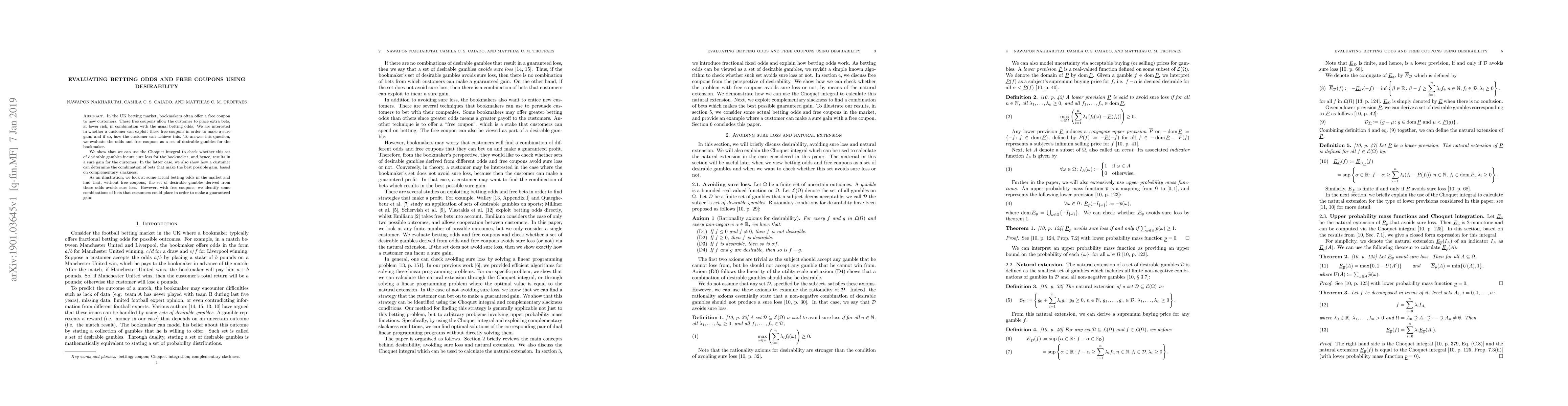 Researchers show that customers can exploit free coupons offered by UK bookmakers to guarantee a win using mathematical techniques like the Choquet integral and complementary slackness. These findings highlight the potential for customers to gain an advantage from these offers.
