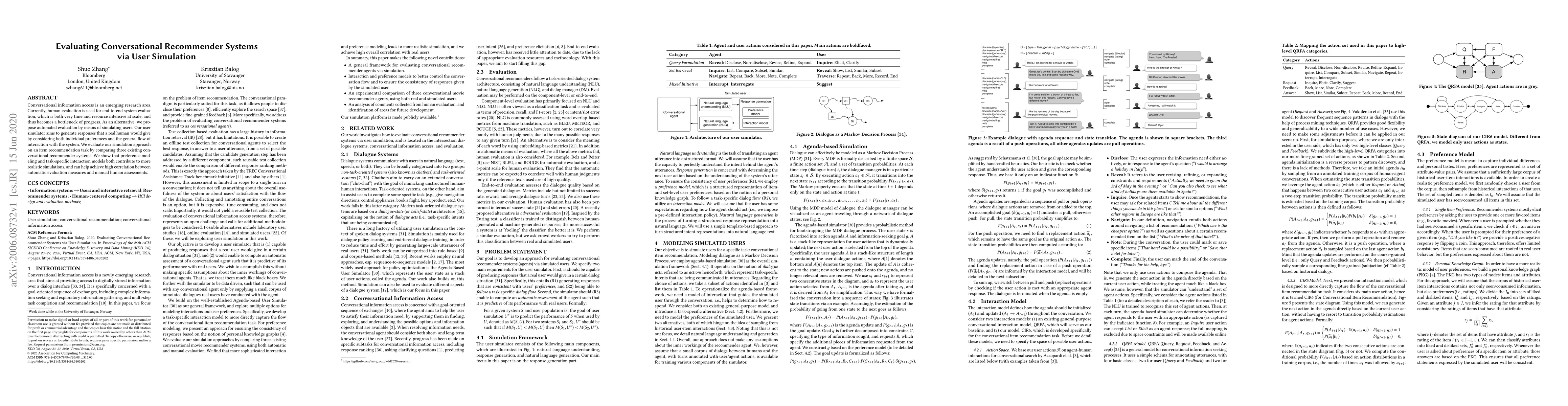 Summary: This paper proposes an automated method for evaluating conversational recommender systems by simulating user interactions, aiming to reduce the time and resource demands of human evaluations. The authors demonstrate that incorporating preference modeling and interaction flow enhances the realism of the simulation, achieving a high correlation with manual human assessments.