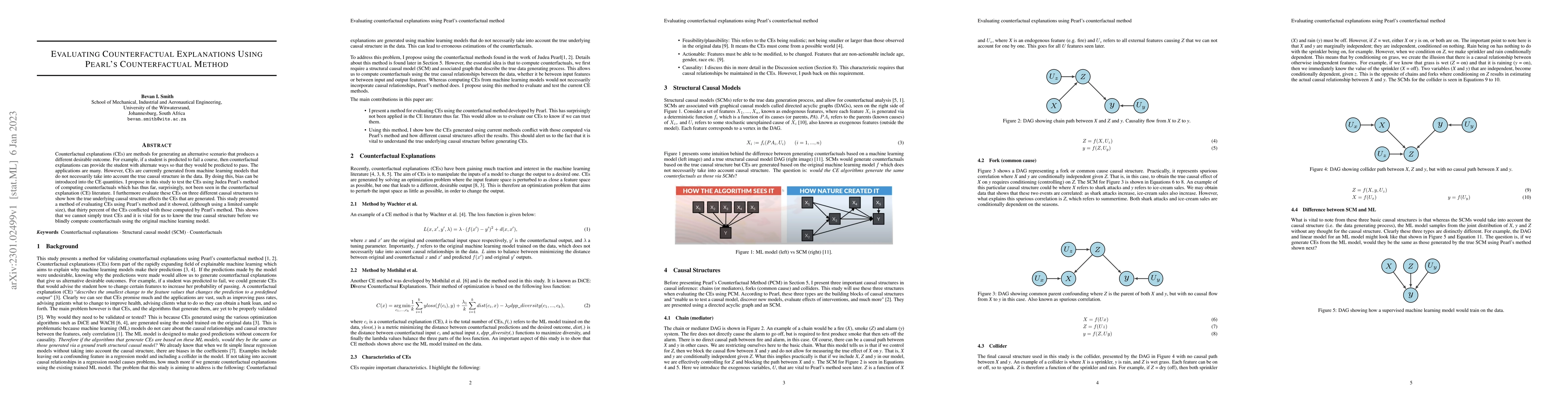 This paper evaluates counterfactual explanations (CEs) using Judea Pearl's method to assess their accuracy against the true causal structure. It finds that 30% of CEs generated by machine learning models conflict with those computed by Pearl's method, highlighting the importance of understanding the underlying causal structure before generating CEs.