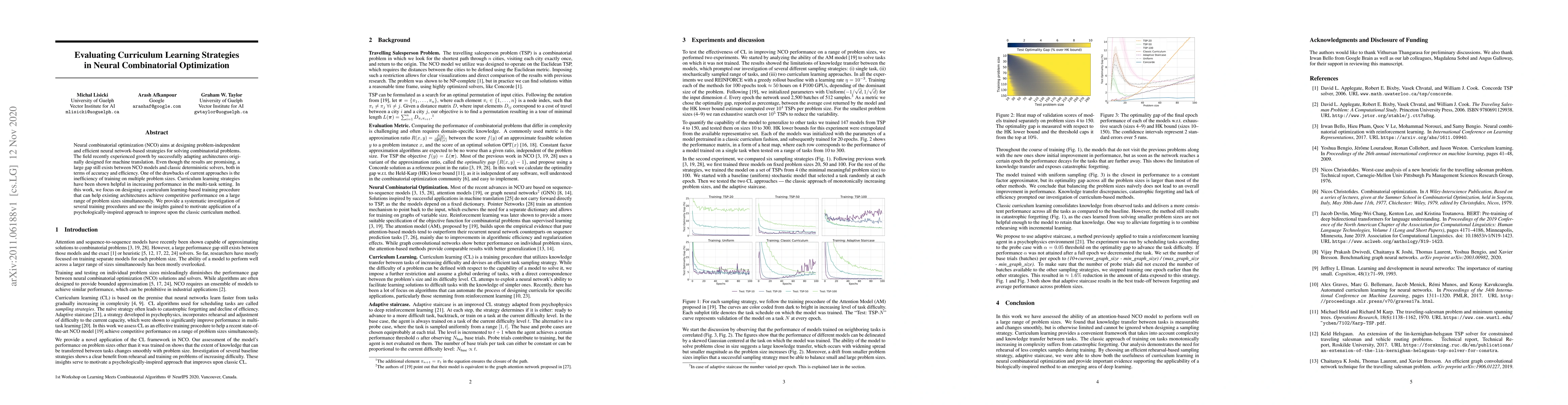 Neural combinatorial optimization (NCO) aims at designing problem-independent and efficient neural network-based strategies for solving combinatorial problems. The field recently experienced growth by successfully adapting architectures originally designed for machine translation. Even though the results are promising, a large gap still exists between NCO models and classic deterministic solvers, both in terms of accuracy and efficiency. One of the drawbacks of current approaches is the inefficiency of training on multiple problem sizes. Curriculum learning strategies have been shown helpful in increasing performance in the multi-task setting. In this work, we focus on designing a curriculum learning-based training procedure that can help existing architectures achieve competitive performance on a large range of problem sizes simultaneously. We provide a systematic investigation of several training procedures and use the insights gained to motivate application of a psychologically-inspired approach to improve upon the classic curriculum method.