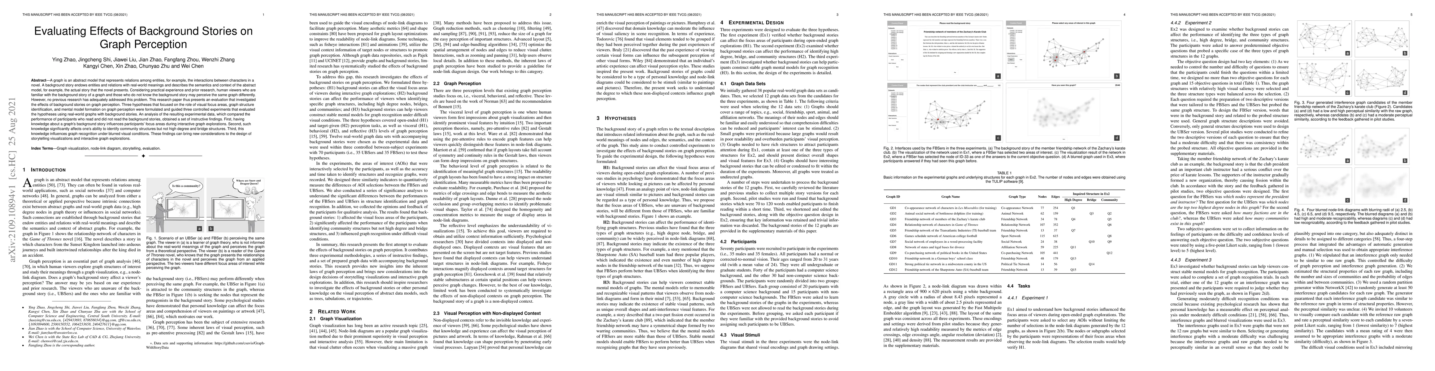 Researchers investigated how background stories affect graph perception, finding that knowing a story's context influences focus areas, community structure identification, and recognition under blurred conditions.