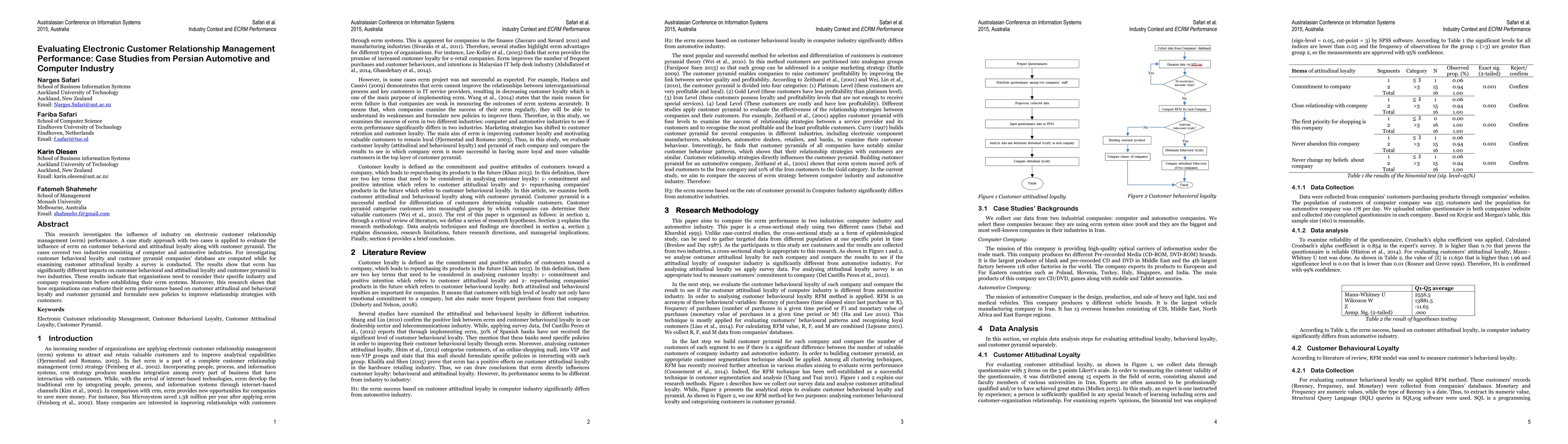 This research evaluates the impact of electronic customer relationship management (e-CRM) in two distinct industries—automotive and computer—using case studies. Findings reveal significant differences in e-CRM's influence on customer loyalty and behavior across these industries, offering organizations a new framework to assess and enhance their e-CRM strategies.