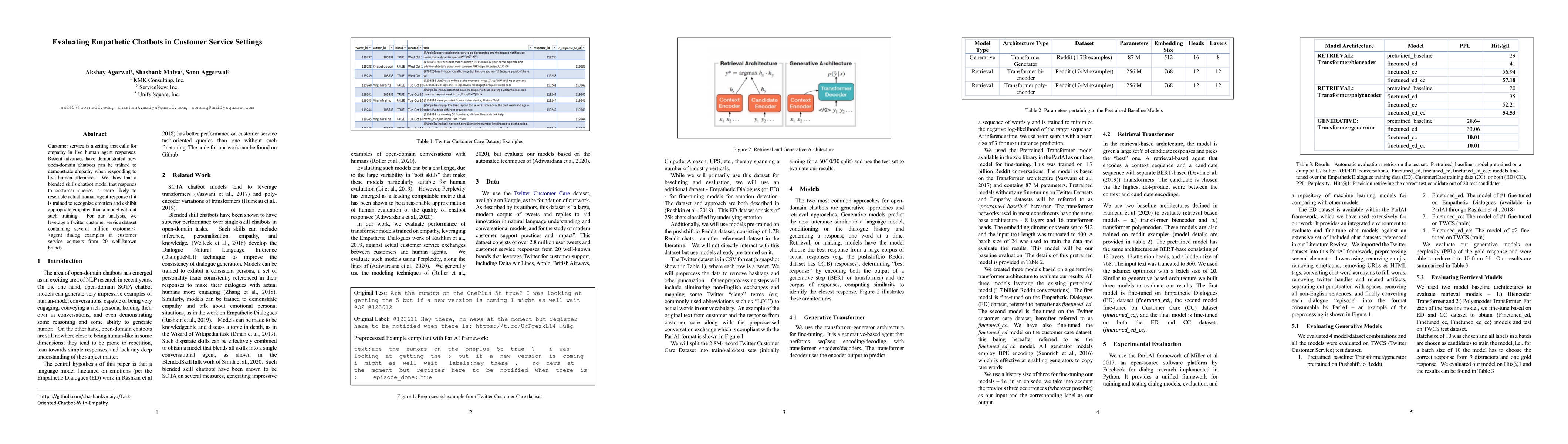 This study evaluates empathetic chatbots in customer service, demonstrating that a blended skills model trained to recognize emotion and exhibit empathy performs better than non-empathetic models. The analysis uses a large Twitter dataset of customer service dialogues from 20 brands to compare responses.