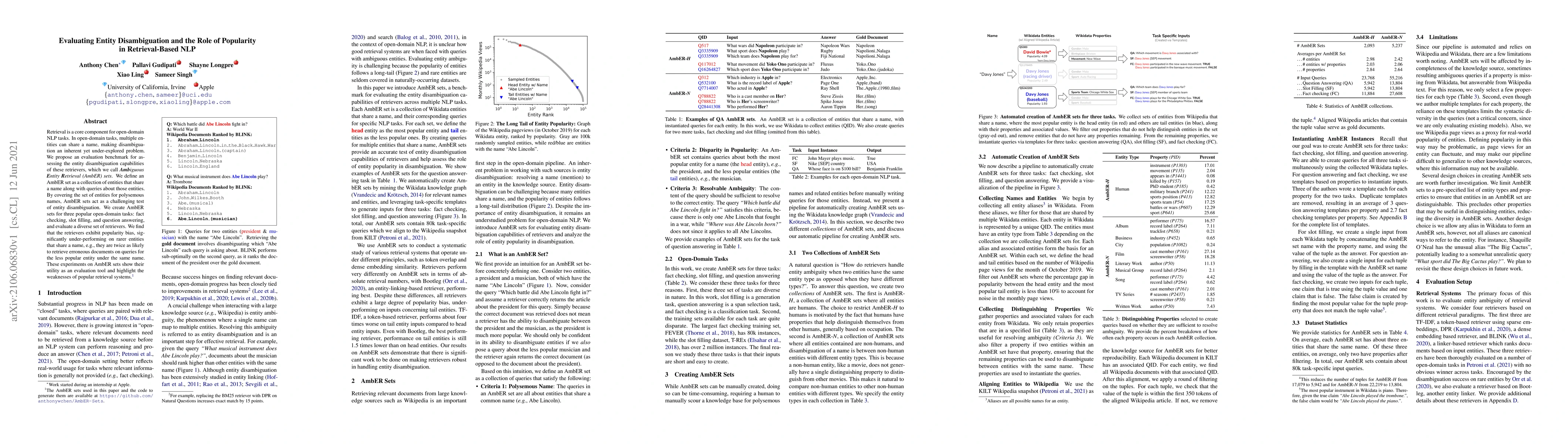 This paper introduces an evaluation benchmark, Ambiguous Entity Retrieval (AmbER) sets, to assess entity disambiguation in open-domain NLP tasks. It reveals that retrieval systems exhibit popularity bias, underperforming significantly on less popular entities, thus highlighting their weaknesses.