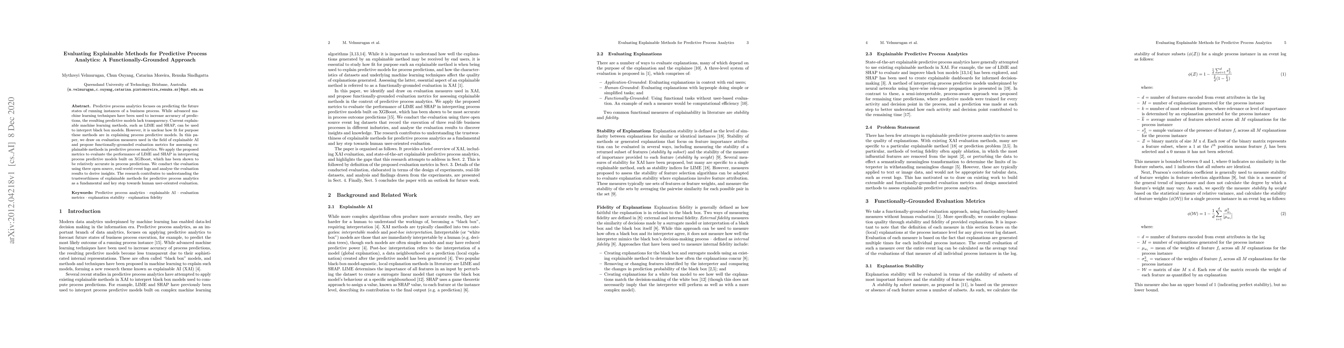 Predictive process analytics focuses on predicting the future states of running instances of a business process. While advanced machine learning techniques have been used to increase accuracy of predictions, the resulting predictive models lack transparency. Current explainable machine learning methods, such as LIME and SHAP, can be used to interpret black box models. However, it is unclear how fit for purpose these methods are in explaining process predictive models. In this paper, we draw on evaluation measures used in the field of explainable AI and propose functionally-grounded evaluation metrics for assessing explainable methods in predictive process analytics. We apply the proposed metrics to evaluate the performance of LIME and SHAP in interpreting process predictive models built on XGBoost, which has been shown to be relatively accurate in process predictions. We conduct the evaluation using three open source, real-world event logs and analyse the evaluation results to derive insights. The research contributes to understanding the trustworthiness of explainable methods for predictive process analytics as a fundamental and key step towards human user-oriented evaluation.