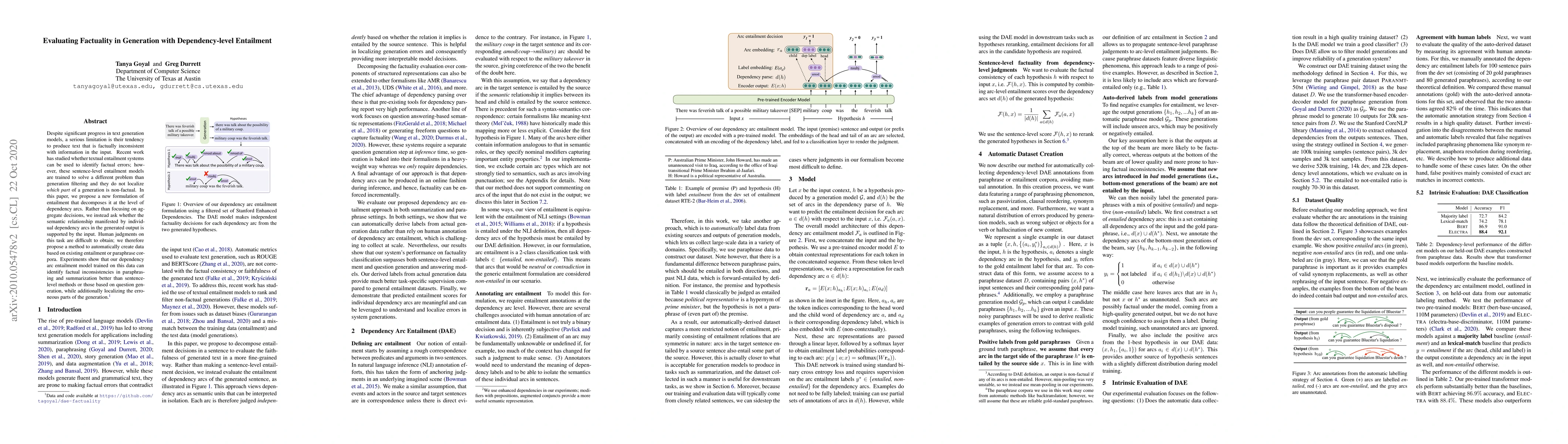 This paper proposes a novel method for identifying factual inconsistencies in text generation by leveraging dependency-level entailment, which localizes errors at the level of individual dependency arcs rather than as an aggregate decision. The method is trained on automatically generated data from existing corpora and outperforms sentence-level entailment models in detecting and pinpointing factual errors in paraphrasing and summarization.