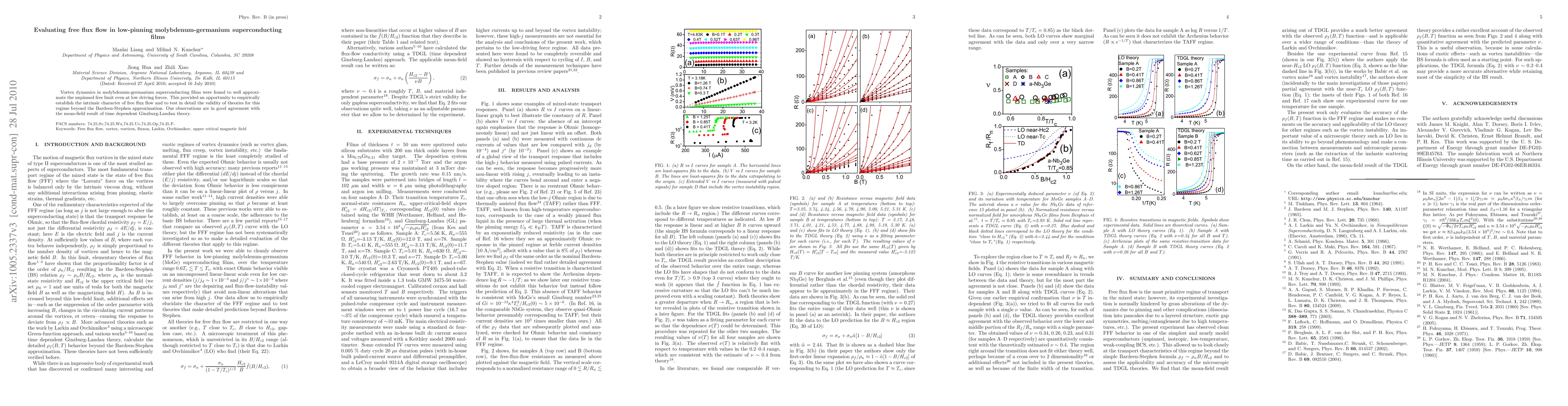Vortex dynamics in molybdenum-germanium superconducting films were found to well approximate the unpinned free limit even at low driving forces. This provided an opportunity to empirically establish the intrinsic character of free flux flow and to test in detail the validity of theories for this regime beyond the Bardeen-Stephen approximation. Our observations are in good agreement with the mean-field result of time dependent Ginzburg-Landau theory. PACS: 74.25.Sv,74.25.Wx,74.25.Uv,74.25.Op,74.25.F- Keywords: vortices, fluxon, Larkin, Ovchinnikov, upper critical magnetic field