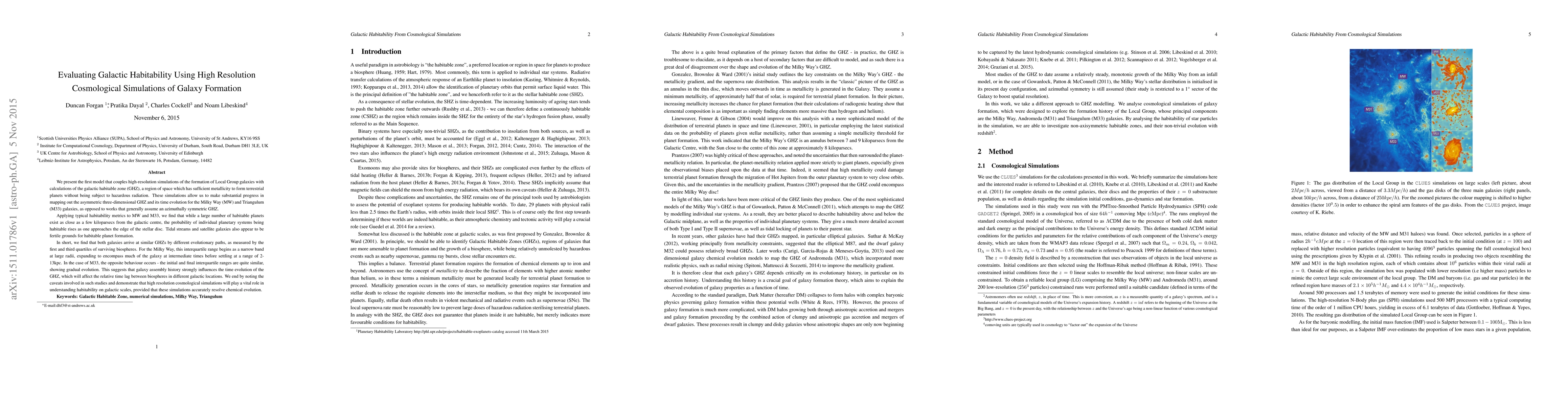 We present the first model that couples high-resolution simulations of the formation of Local Group galaxies with calculations of the galactic habitable zone (GHZ), a region of space which has sufficient metallicity to form terrestrial planets without being subject to hazardous radiation. These simulations allow us to make substantial progress in mapping out the asymmetric three-dimensional GHZ and its time evolution for the Milky Way (MW) and Triangulum (M33) galaxies, as opposed to works that generally assume an azimuthally symmetric GHZ. Applying typical habitability metrics to MW and M33, we find that while a large number of habitable planets exist as close as a few kiloparsecs from the galactic centre, the probability of individual planetary systems being habitable rises as one approaches the edge of the stellar disc. Tidal streams and satellite galaxies also appear to be fertile grounds for habitable planet formation. In short, we find that both galaxies arrive at similar GHZs by different evolutionary paths, as measured by the first and third quartiles of surviving biospheres. For the Milky Way, this interquartile range begins as a narrow band at large radii, expanding to encompass much of the galaxy at intermediate times before settling at a range of 2-13kpc. In the case of M33, the opposite behaviour occurs - the initial and final interquartile ranges are quite similar, showing gradual evolution. This suggests that galaxy assembly history strongly influences the time evolution of the GHZ, which will affect the relative time lag between biospheres in different galactic locations. We end by noting the caveats involved in such studies and demonstrate that high resolution cosmological simulations will play a vital role in understanding habitability on galactic scales, provided that these simulations accurately resolve chemical evolution.