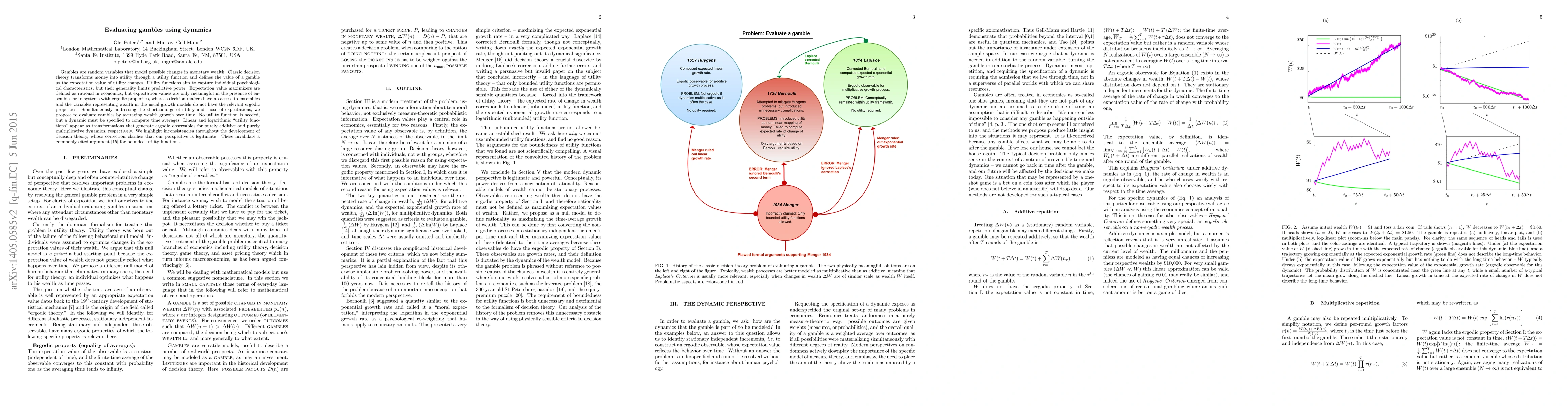 This paper critiques the reliance on utility functions in traditional decision theory for evaluating gambles and proposes an alternative method by averaging wealth growth over time, eliminating the need for utility functions but requiring a specified dynamic. It highlights the theoretical inconsistencies in decision theory and argues for a more practical approach to evaluating gambles.