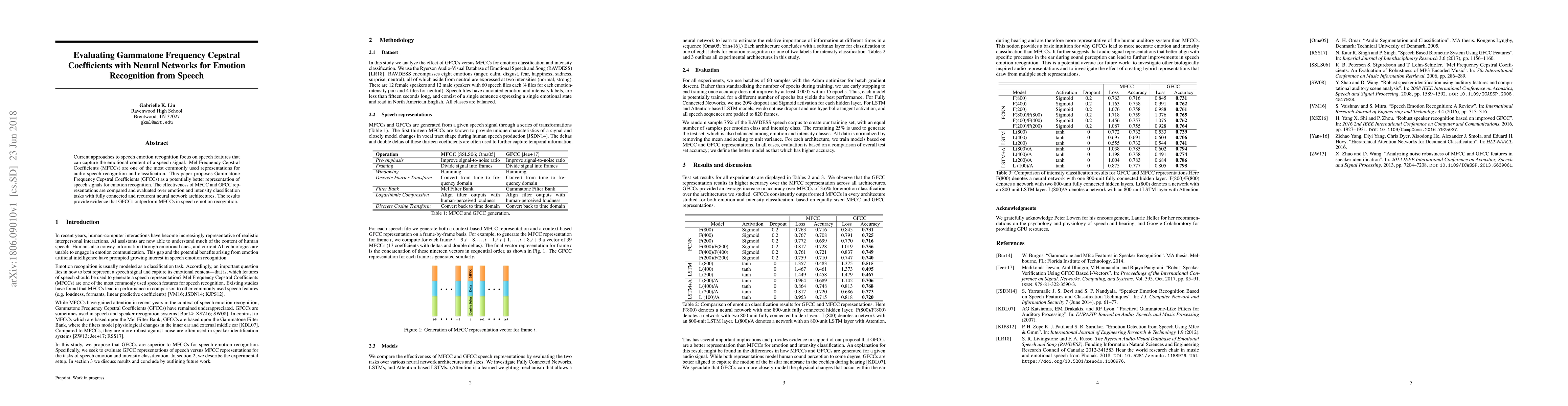 This paper proposes Gammatone Frequency Cepstral Coefficients (GFCCs) as a superior alternative to Mel Frequency Cepstral Coefficients (MFCCs) for emotion recognition in speech. Experiments using neural networks show that GFCCs outperform MFCCs in both emotion and intensity classification tasks.