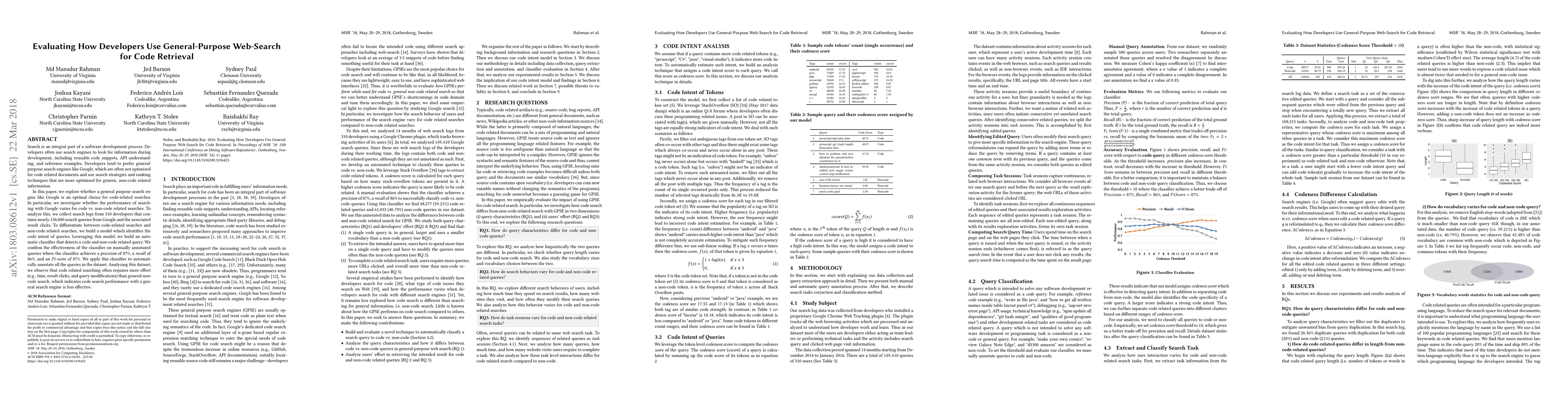 This paper investigates the effectiveness of general-purpose web search engines like Google for developers' code-related searches. The study finds that code searches require more effort compared to non-code searches, suggesting that general search engines are suboptimal for code retrieval.
