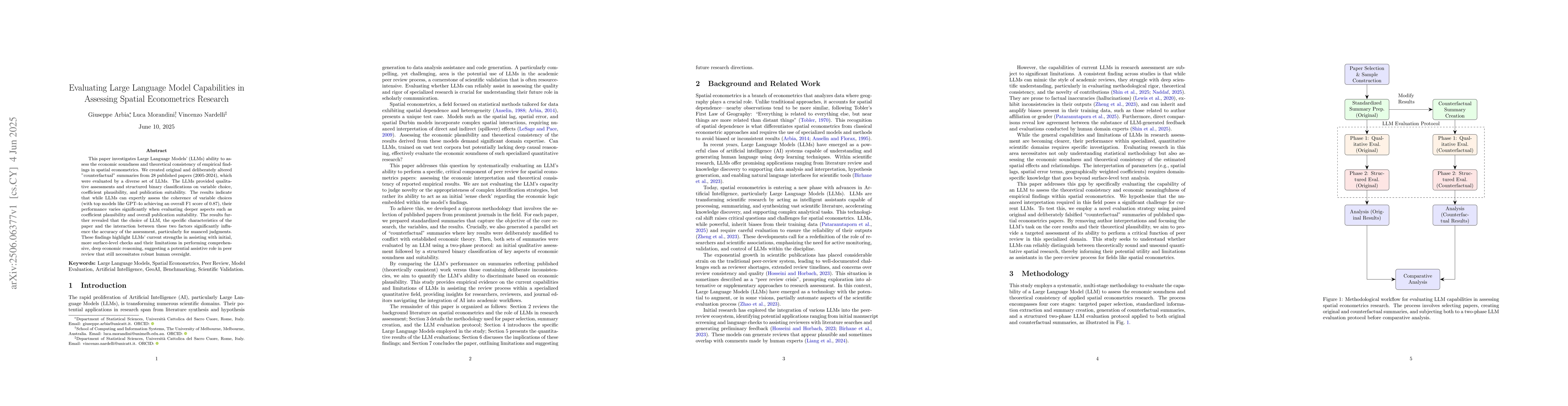 Large Language Models excel at initial checks but struggle with deeper economic reasoning in assessing spatial econometrics research. Their performance varies greatly depending on LLM choice and paper characteristics.