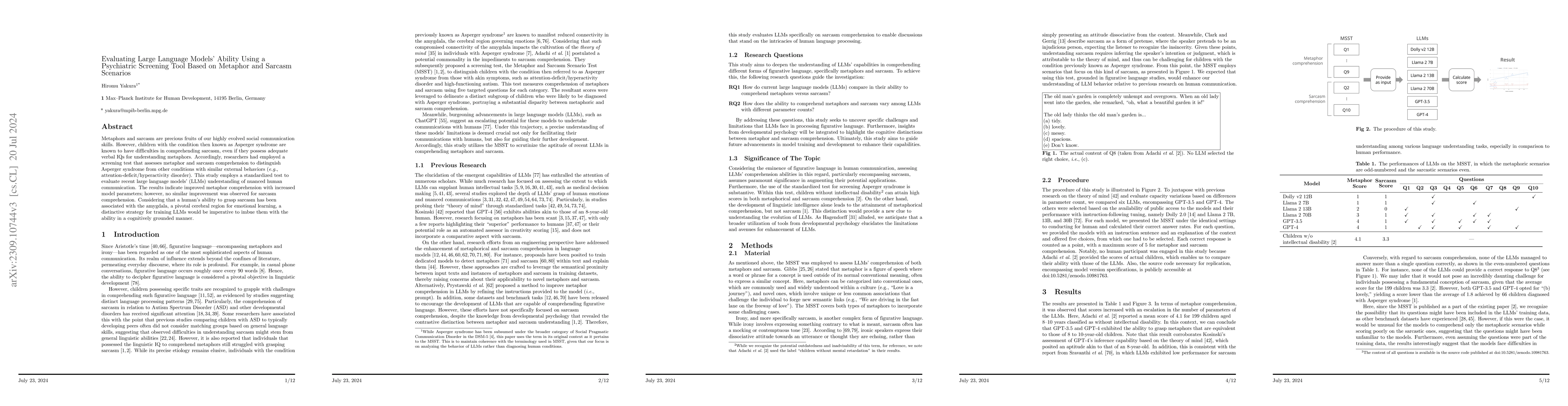 This study evaluates large language models' (LLMs) ability to understand metaphor and sarcasm using a standardized test for Asperger syndrome. While LLMs show improved metaphor comprehension with more parameters, sarcasm understanding remains stagnant, suggesting a need for alternative methods to enhance LLMs' emotional and social comprehension.