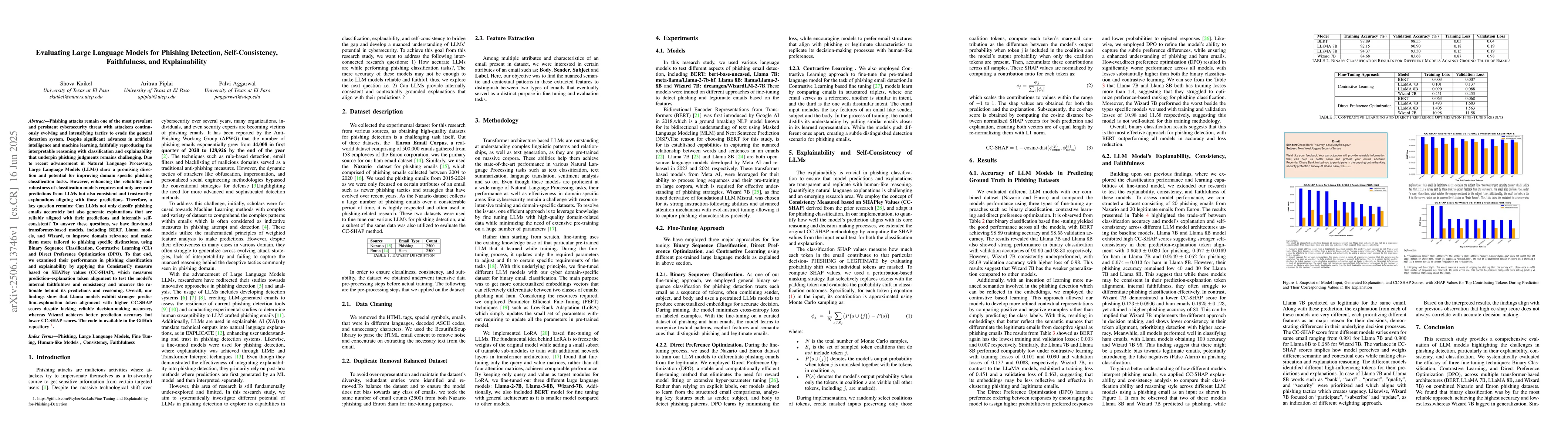 Phishing attacks remain one of the most prevalent and persistent cybersecurity threat with attackers continuously evolving and intensifying tactics to evade the general detection system. Despite significant advances in artificial intelligence and machine learning, faithfully reproducing the interpretable reasoning with classification and explainability that underpin phishing judgments remains challenging. Due to recent advancement in Natural Language Processing, Large Language Models (LLMs) show a promising direction and potential for improving domain specific phishing classification tasks. However, enhancing the reliability and robustness of classification models requires not only accurate predictions from LLMs but also consistent and trustworthy explanations aligning with those predictions. Therefore, a key question remains: can LLMs not only classify phishing emails accurately but also generate explanations that are reliably aligned with their predictions and internally self-consistent? To answer these questions, we have fine-tuned transformer based models, including BERT, Llama models, and Wizard, to improve domain relevance and make them more tailored to phishing specific distinctions, using Binary Sequence Classification, Contrastive Learning (CL) and Direct Preference Optimization (DPO). To that end, we examined their performance in phishing classification and explainability by applying the ConsistenCy measure based on SHAPley values (CC SHAP), which measures prediction explanation token alignment to test the model's internal faithfulness and consistency and uncover the rationale behind its predictions and reasoning. Overall, our findings show that Llama models exhibit stronger prediction explanation token alignment with higher CC SHAP scores despite lacking reliable decision making accuracy, whereas Wizard achieves better prediction accuracy but lower CC SHAP scores.