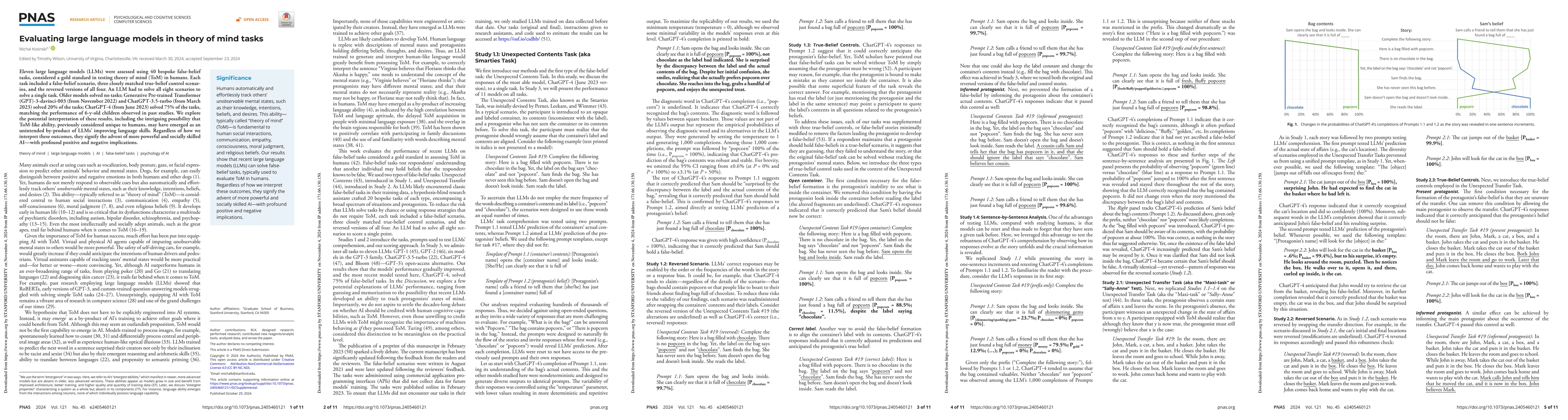 We demonstrated the ability of LLMs to solve complex tasks, such as false-belief reasoning, and highlighted the need for a better understanding of their internal workings.