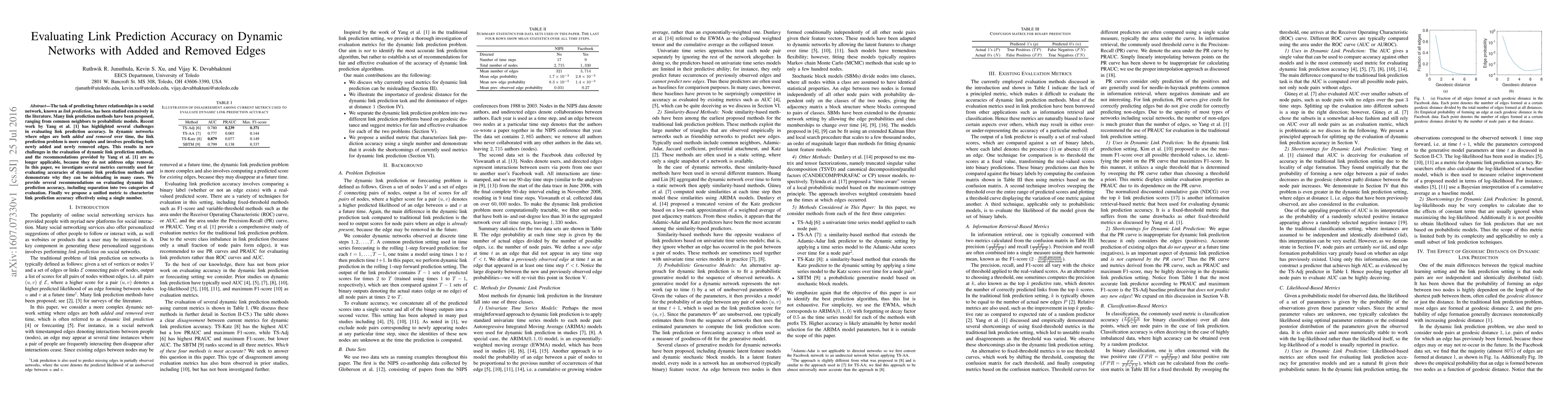 This paper examines the challenges in evaluating link prediction accuracy in dynamic networks where edges are both added and removed. It critiques existing metrics and recommends a unified metric to better characterize dynamic link prediction accuracy, emphasizing the need to separately evaluate newly added and removed edges.