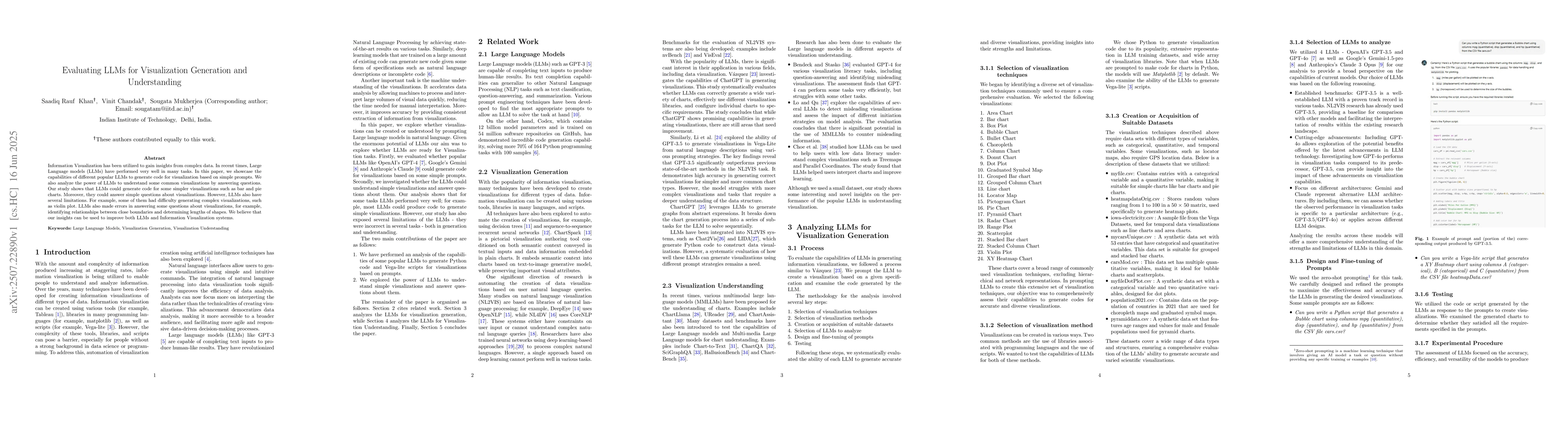 This paper extends prior art by evaluating LLMs for both visualization generation and understanding, providing a detailed analysis of their capabilities and limitations in this domain.