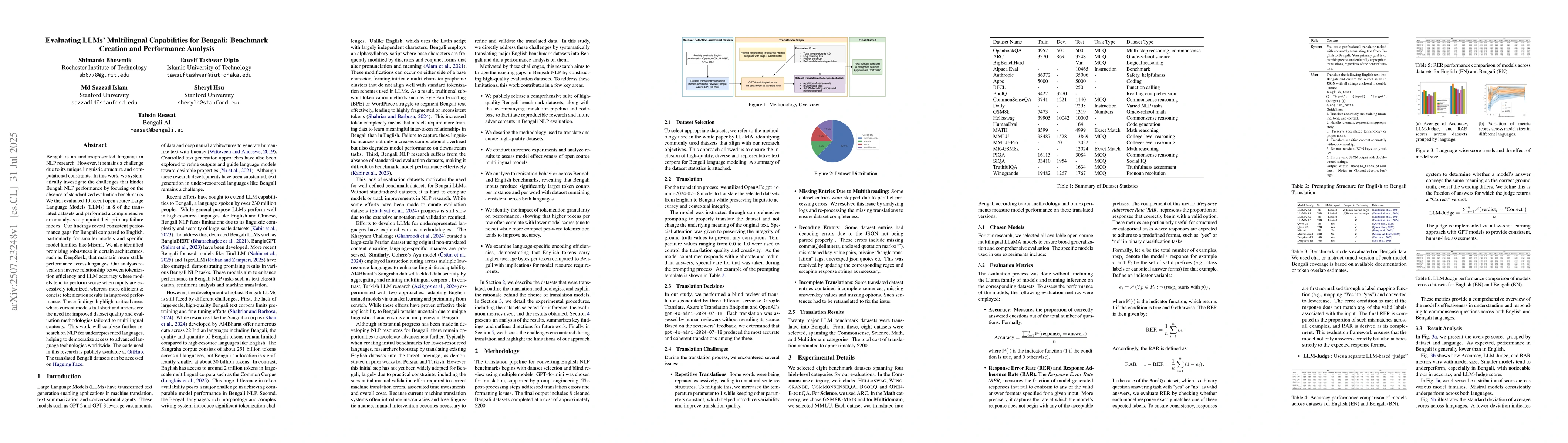Bengali is an underrepresented language in NLP research. However, it remains a challenge due to its unique linguistic structure and computational constraints. In this work, we systematically investigate the challenges that hinder Bengali NLP performance by focusing on the absence of standardized evaluation benchmarks. We then evaluated 10 recent open source Large Language Models (LLMs) in 8 of the translated datasets and performed a comprehensive error analysis to pinpoint their primary failure modes. Our findings reveal consistent performance gaps for Bengali compared to English, particularly for smaller models and specific model families like Mistral. We also identified promising robustness in certain architectures, such as DeepSeek, that maintain more stable performance across languages. Our analysis reveals an inverse relationship between tokenization efficiency and LLM accuracy where models tend to perform worse when inputs are excessively tokenized, whereas more efficient \& concise tokenization results in improved performance. These findings highlight critical areas where current models fall short and underscore the need for improved dataset quality and evaluation methodologies tailored to multilingual contexts. This work will catalyze further research on NLP for underrepresented languages, helping to democratize access to advanced language technologies worldwide. The code and dataset used in this research is publicly available at https://github.com/BengaliAI/bn-llm-benchmark.