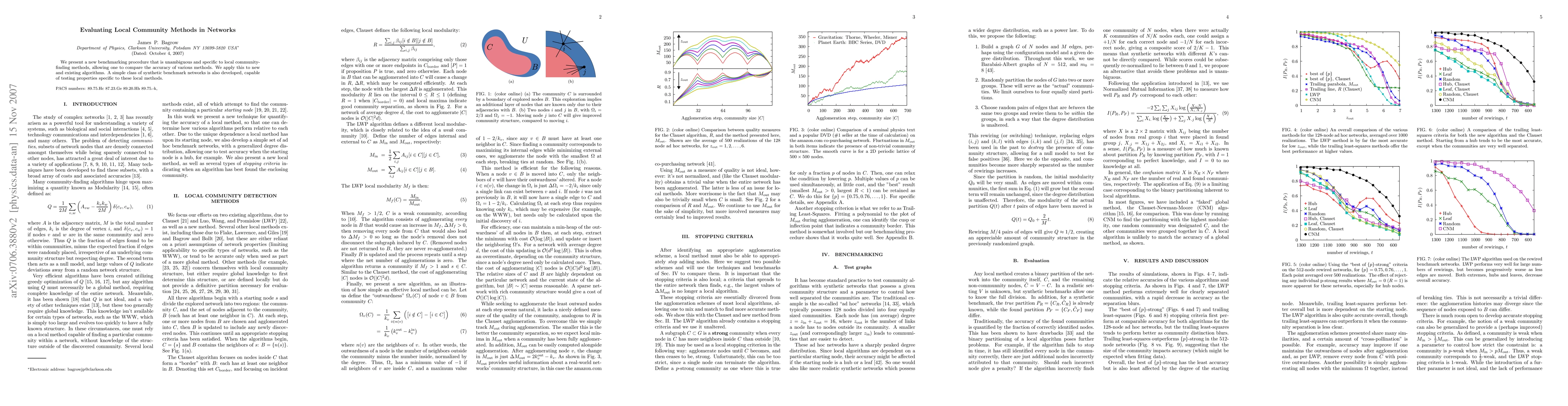 We present a new benchmarking procedure that is unambiguous and specific to local community-finding methods, allowing one to compare the accuracy of various methods. We apply this to new and existing algorithms. A simple class of synthetic benchmark networks is also developed, capable of testing properties specific to these local methods.