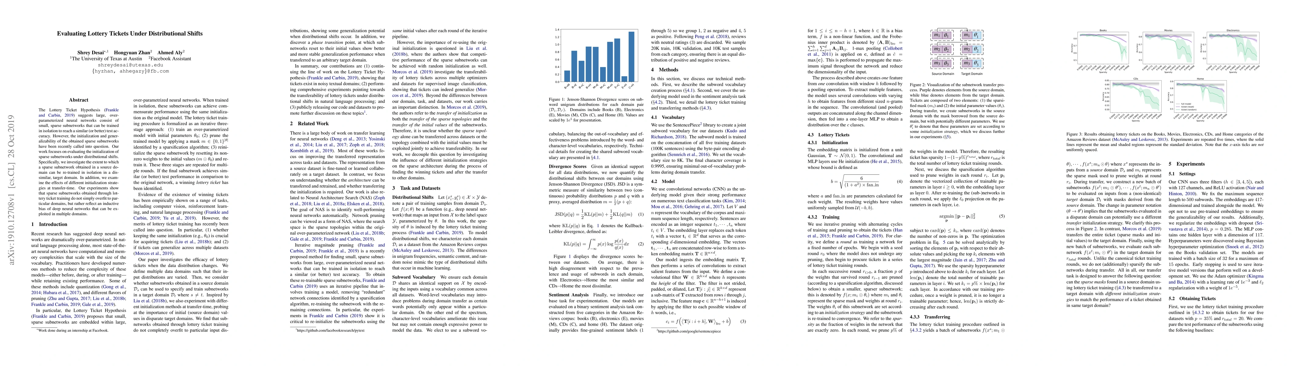 The Lottery Ticket Hypothesis suggests large, over-parameterized neural networks consist of small, sparse subnetworks that can be trained in isolation to reach a similar (or better) test accuracy. However, the initialization and generalizability of the obtained sparse subnetworks have been recently called into question. Our work focuses on evaluating the initialization of sparse subnetworks under distributional shifts. Specifically, we investigate the extent to which a sparse subnetwork obtained in a source domain can be re-trained in isolation in a dissimilar, target domain. In addition, we examine the effects of different initialization strategies at transfer-time. Our experiments show that sparse subnetworks obtained through lottery ticket training do not simply overfit to particular domains, but rather reflect an inductive bias of deep neural networks that can be exploited in multiple domains.