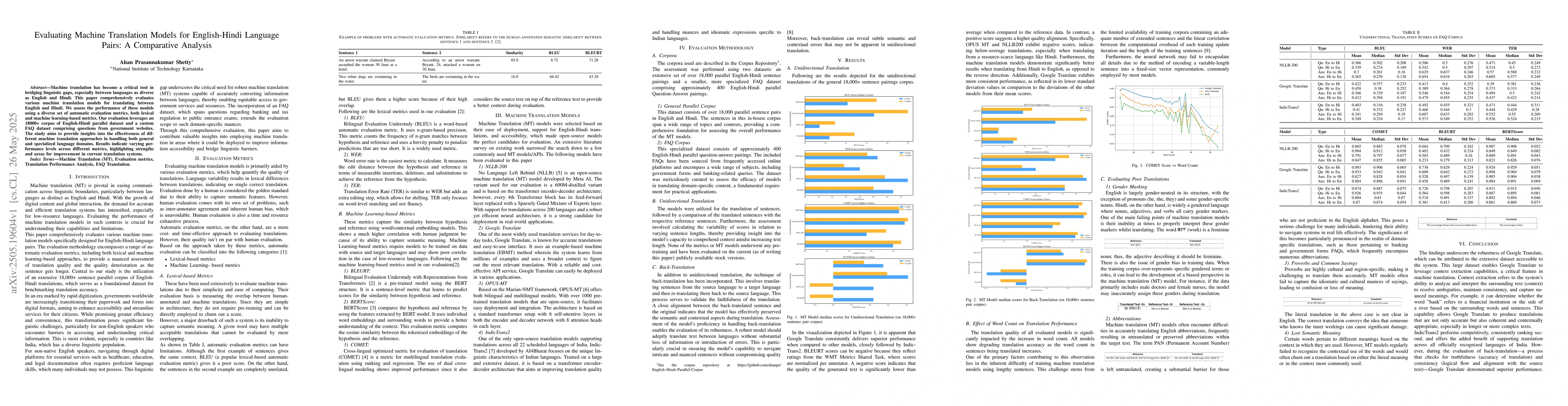 The paper presents a comprehensive comparative analysis of machine translation models for English-Hindi, employing diverse evaluation metrics.