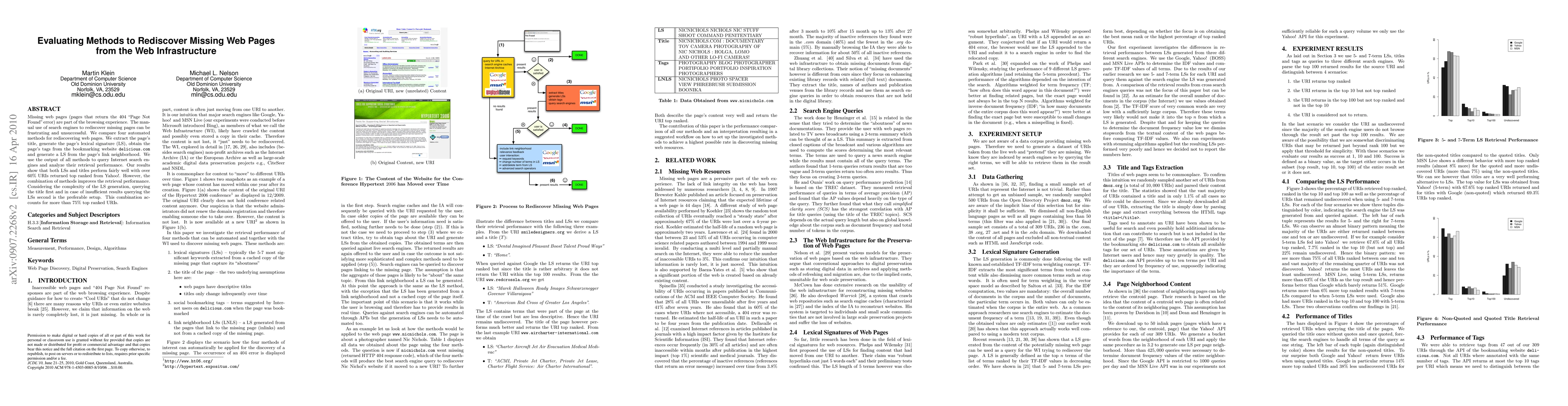 Researchers developed an automated system to rediscover missing web pages using four methods, finding that combining two approaches improves retrieval performance, especially when querying Yahoo!