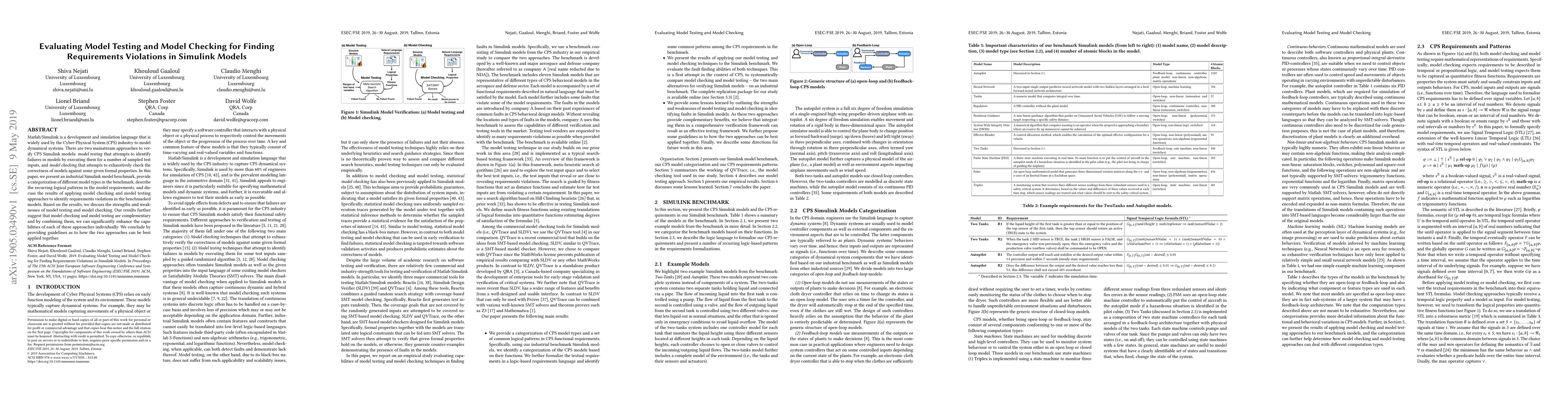 This paper evaluates model testing and model checking for identifying requirements violations in Simulink models, finding that both approaches have strengths and weaknesses. It concludes that combining both methods can significantly improve verification capabilities and provides guidelines for their optimal joint application.