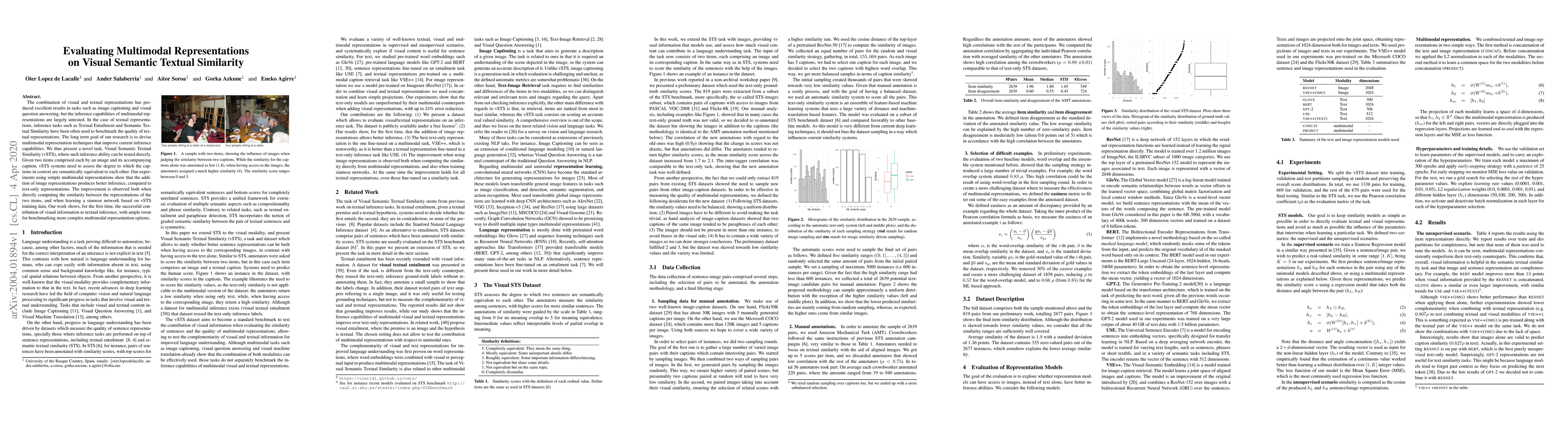 This paper introduces a new task, Visual Semantic Textual Similarity (vSTS), to evaluate how well multimodal representations can infer semantic equivalence between image-caption pairs. Initial experiments show that integrating visual representations with textual ones enhances inference capabilities over text-only methods.