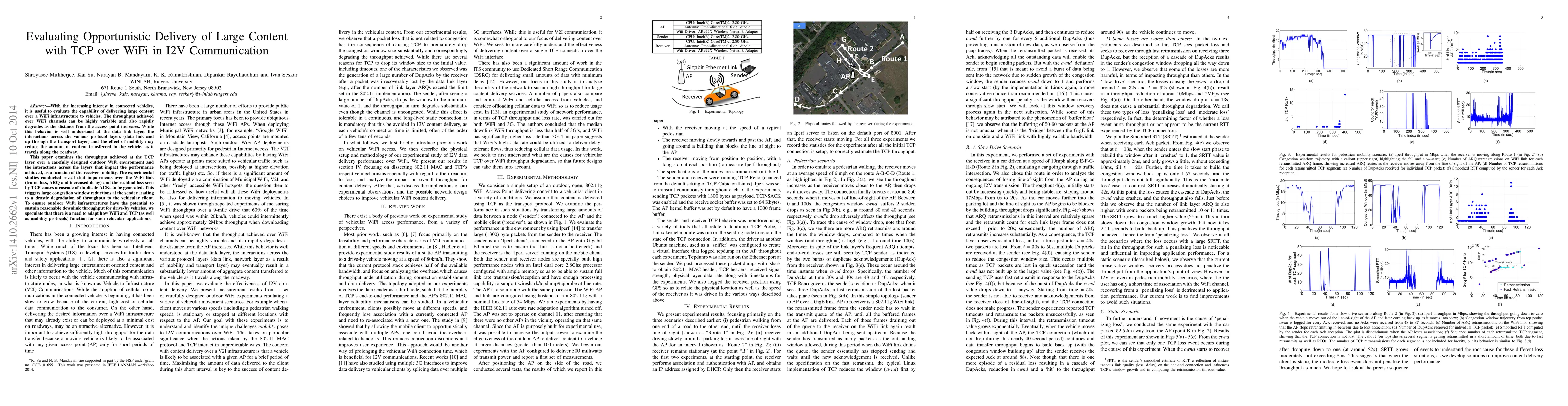 This study investigates WiFi performance in outdoor environments for connected vehicles, finding that mobility causes congestion window reductions and drastic throughput degradation. It suggests adapting WiFi and TCP functions to support drive-by vehicles.