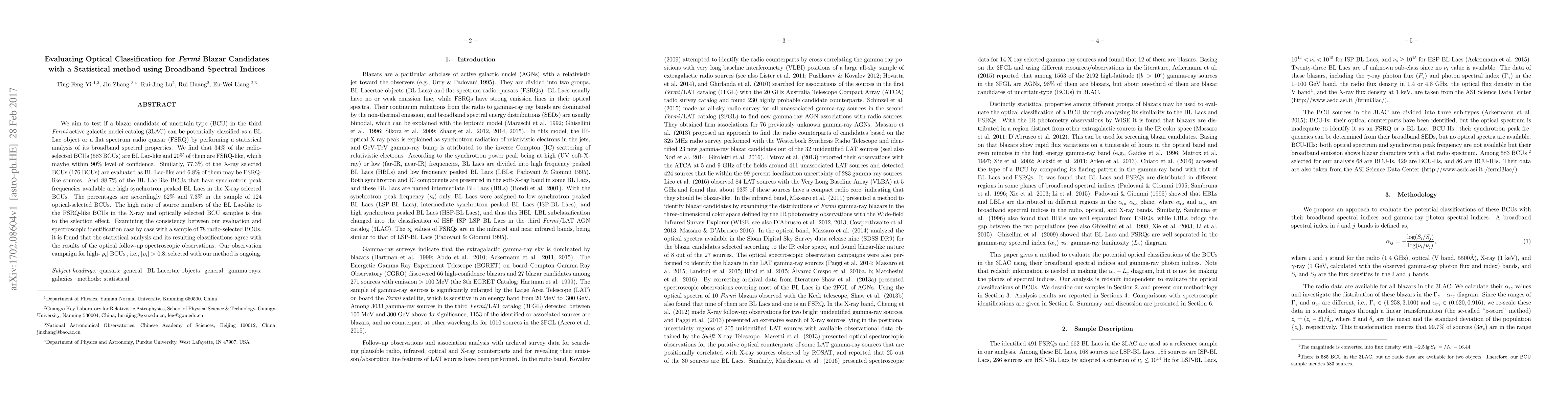 This paper evaluates the optical classification of uncertain-type blazar candidates from the 3LAC using statistical broadband spectral indices, finding that 34% of radio-selected candidates are BL Lac-like and 20% are FSRQ-like. The method shows good agreement with spectroscopic observations, with an ongoing campaign targeting high-|ρ_s| candidates.