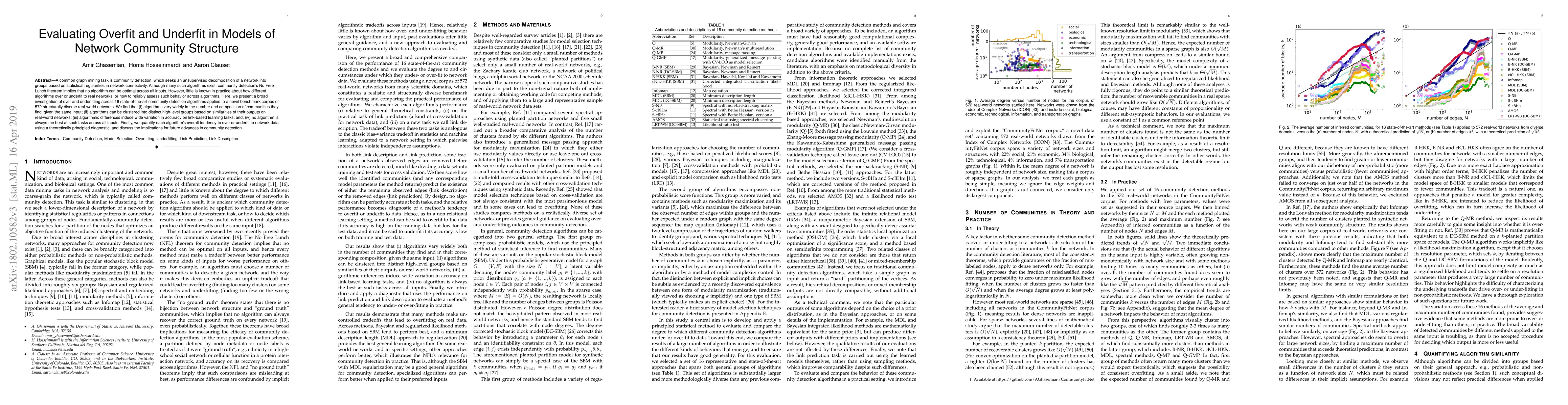 A study of 16 community detection algorithms on 406 real-world networks found that they vary in their performance, with some overfitting or underfitting to different inputs, and proposed a new diagnostic for evaluating these issues.