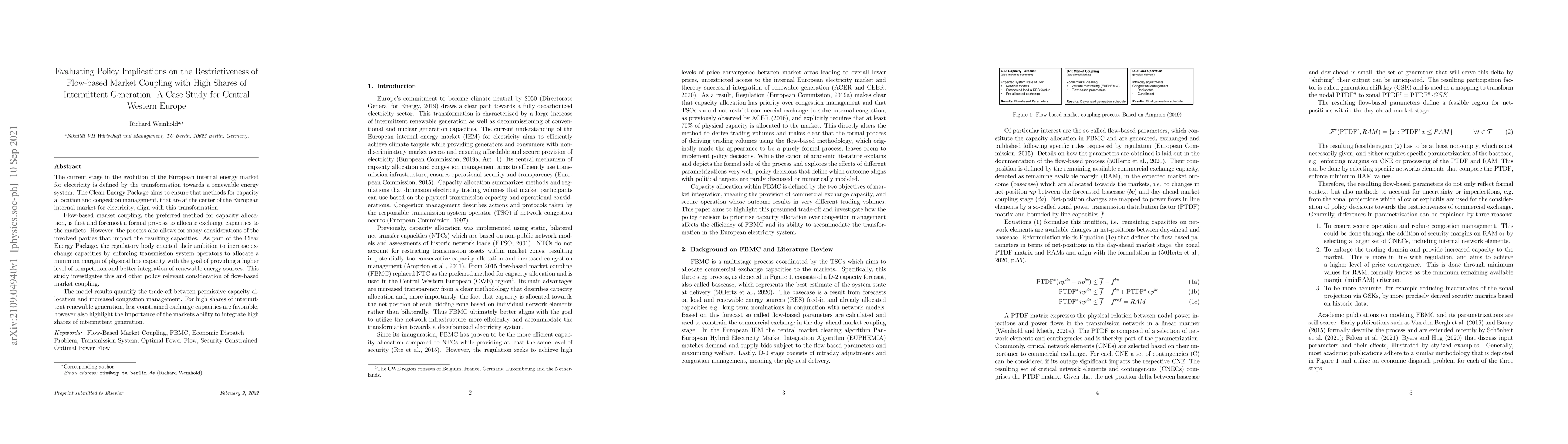 The current stage in the evolution of the European internal energy market for electricity is defined by the transformation towards a renewable energy system. The Clean Energy Package aims to ensure that methods for capacity allocation and congestion management, that are at the center of the European internal market for electricity, align with this transformation. Flow-based market coupling, the preferred method for capacity allocation, is first and foremost a formal process to allocate exchange capacities to the markets. However, the process also allows for many considerations of the involved parties that impact the resulting capacities. As part of the Clear Energy Package, the regulatory body enacted their ambition to increase exchange capacities by enforcing transmission system operators to allocate a minimum margin of physical line capacity with the goal of providing a higher level of competition and better integration of renewable energy sources. This study investigates this and other policy relevant consideration of flow-based market coupling. The model results quantify the trade-off between permissive capacity allocation and increased congestion management. For high shares of intermittent renewable generation, less constrained exchange capacities are favorable, however also highlight the importance of the markets ability to integrate high shares of intermittent generation. apacities are favourable, however also highlight the importance of the markets ability to integrate high shares of intermittent generation.